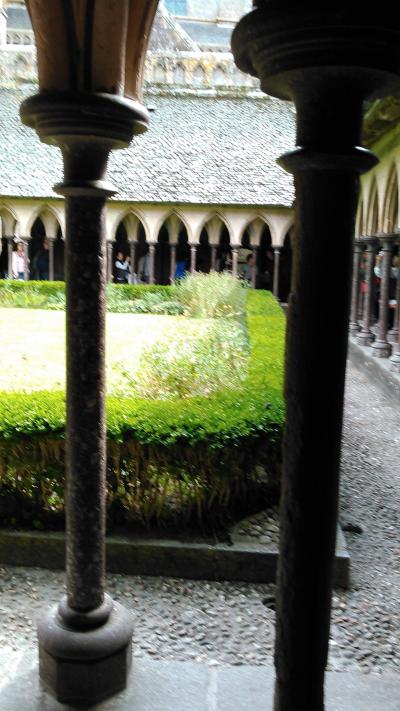 オプショナルツアーで、修道院へ行きました。回廊は緑が豊かで美しいです。背の低い木が植えられ、花も咲いていました。柱は二重になっていて、少しずつずらして建てられています。修道士たちの瞑想の場としての役割もあったそうです。