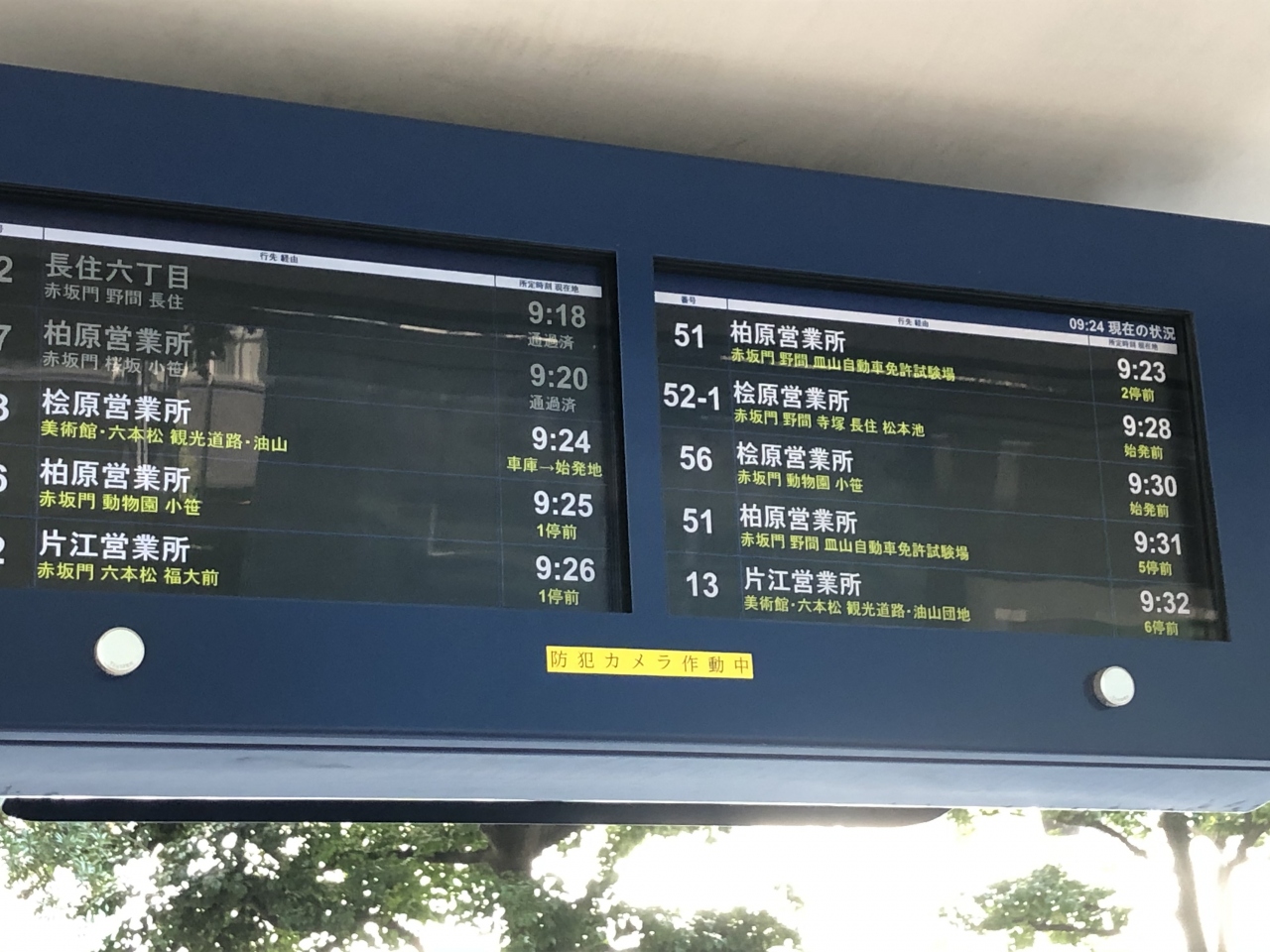 天神から美術館東口まで乗車しました。大きなバス停には、屋根があり、時刻表もあります。電光表示板があり、行き先番号、そのバスが今どこを走っているのかが表示されるので、安心して待っていられます。昨日は100円と安く快適です。