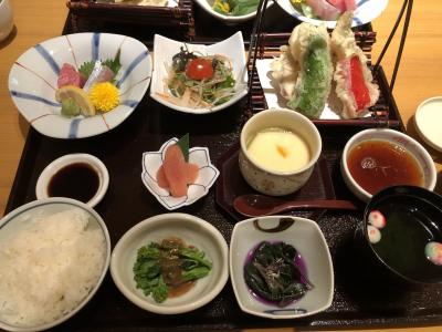 天神にある大丸東エルガーラ館6階にあるお店です。「密」を避け、他のお客が3組ほどしかいなかったので、ここにしました。久しぶりの従姉とのランチで、サービスランチ御膳にしました。ごはん、吸いもの、茶わん蒸し、刺身、天ぷら、野菜の煮物、明太で、1400円。食後のコーヒーや紅茶は200円。美味しかったです。