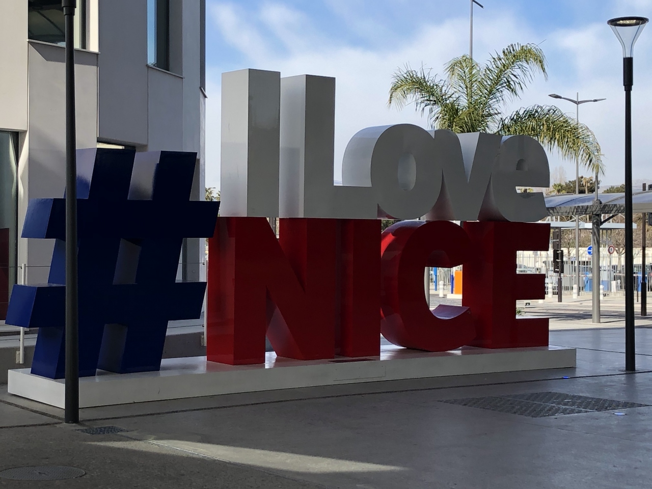 ニースからミュンヘン乗り継ぎで成田へ戻りました。表に観光地によくある「アイラブニース」の文字看板があります。小さめの空港で、お店もさほど多くなく、迷いにくいと思います。ラウンジは2階、待合室というか、ベンチは搭乗口のそばにあります。