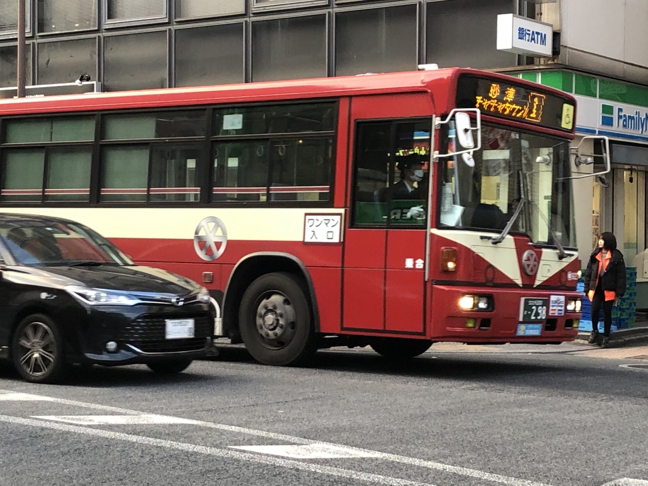 昔チンチン電車が走っていたその電車通りを、今はバスが走っています。数多く走っていますが、中にはあの懐かしい電車の、赤茶色のバスが「復刻バス」として走っています。ちょっと赤みが強いようですが、懐かしく、思わずパチリ。
