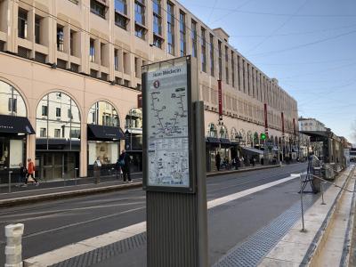 ジャンメドサン通りにあるデパートで、ぶらぶら歩きした際に、中へ入って見ました。茶色に黄色の縁取りがある建物なので良く目立ちます。パリやストラスブールの物と同じ系列です。が、商品の種類などは、期待しない方が良いです。