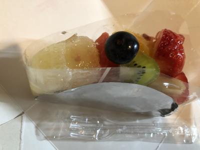 博多阪急地下一階のケーキやさん。今の季節は苺が美味。あまおうタルトにしようか迷いましたが、やはりいつものフルーツタルトにしました。税込み1個420円。保冷剤とフォークを付けてくれます。1個からでも買え、美味です。