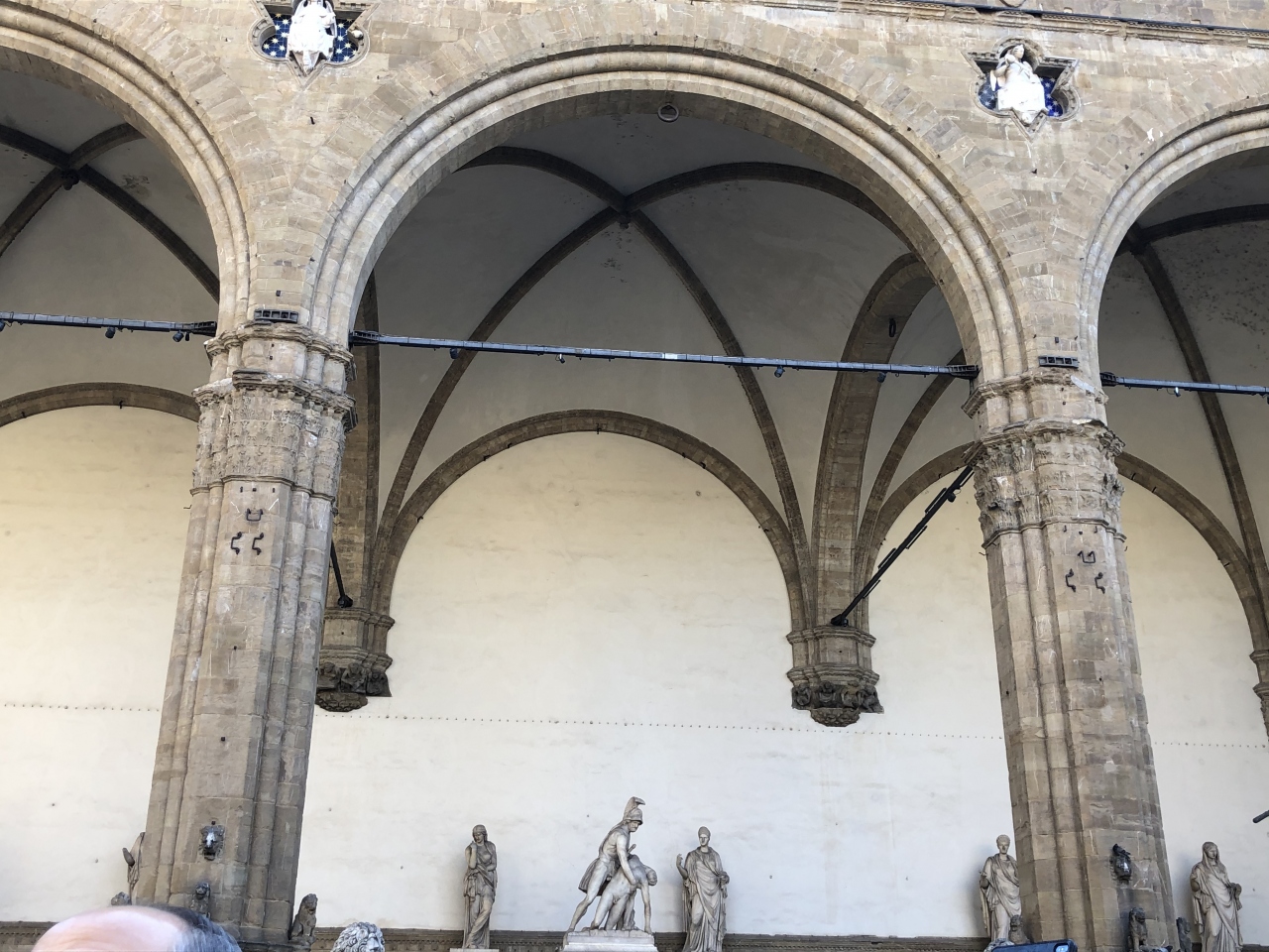 ツアーで見学しました。共和国時代は集会所だったそうで、今は屋外美術館と言った感じです。屋根はありますが、誰でも自由に無料で彫像を見ることができます。ジャン・ポローニャの「サビニ女達の略奪」チェッリーニの「ペルセウス」などが展示されています。