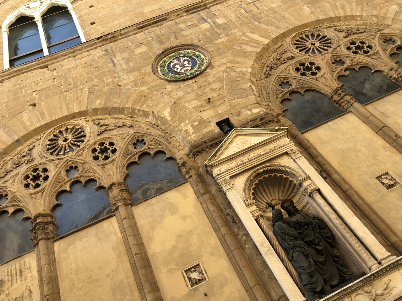 ツアーで見学しました。昔は穀物倉庫だったそうですが、いまは教会になっています。建物の外壁には当時のフィレンツェを牛耳っていた銀行家、商人、手工業の職人など、各業種の守護聖人が飾られています。手に持っているもので業種が分かり面白いです。