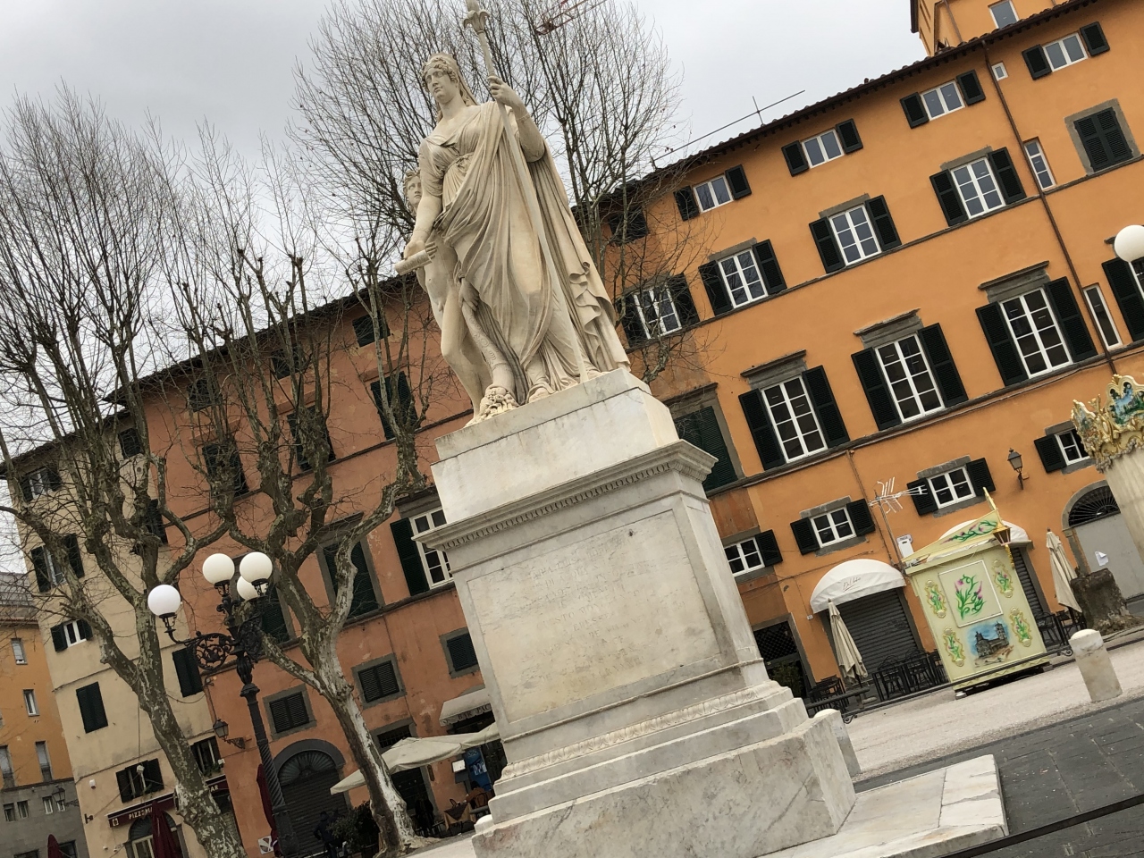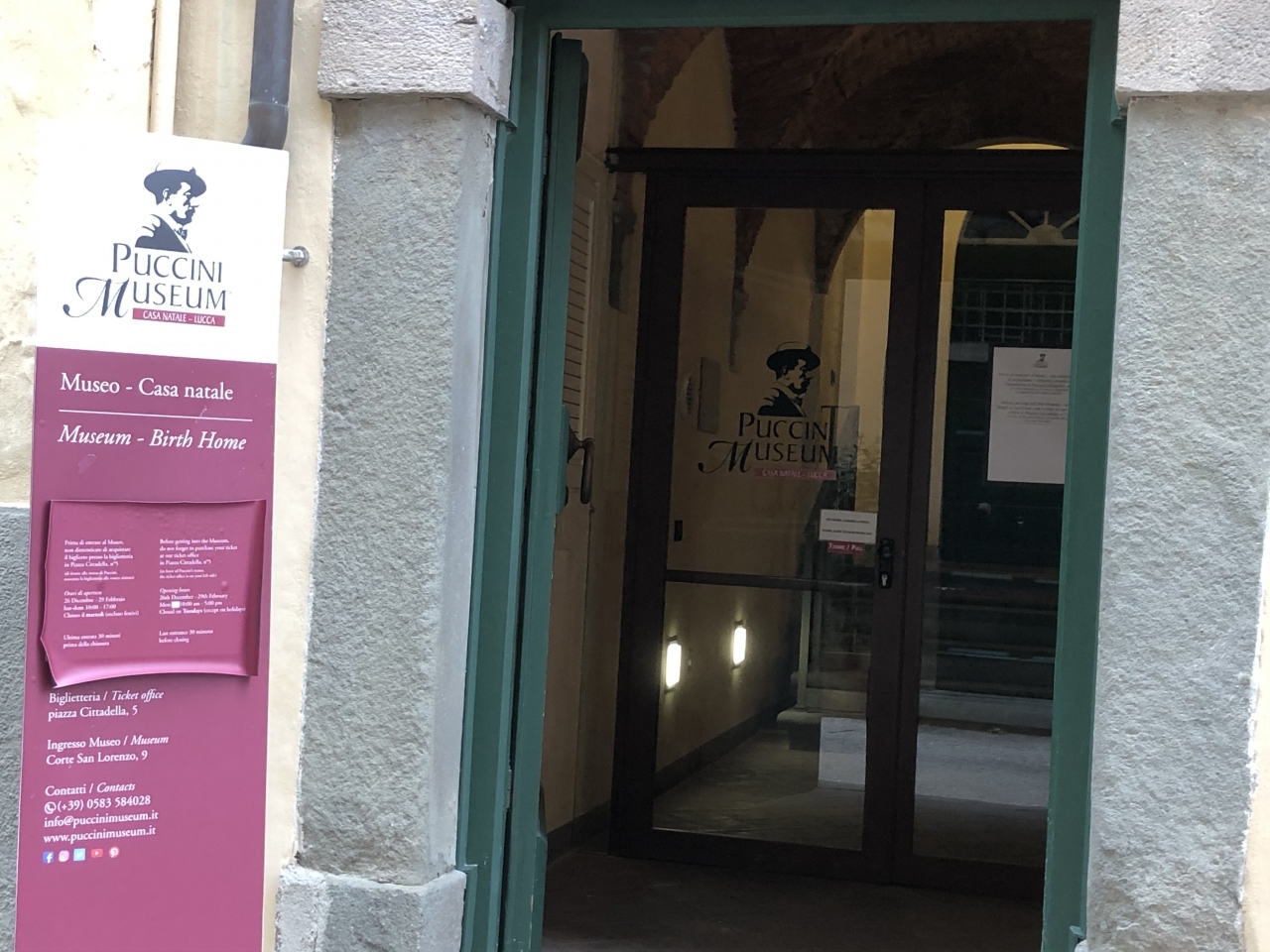 ツアーで前を通りました。銅像が中央、右手に生家、左手にブックショップがあります。生家は普通のアパートに見えます。18歳でミラノに行くまで過ごしたそうです。時間の都合で中には入れませんでしたが、スタンウェイのピアノや楽譜など、見たかったです。