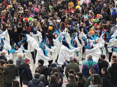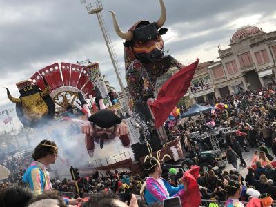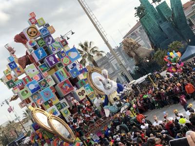ツアーで、観覧指定席に座って鑑賞しました。「牛」「タイガー」「オズの魔法使い」「不思議の国のアリス」などの大きな山車と、ダンス隊のパレードを鑑賞しました。タイガーの目が動くなど、細かい動きも見られ、素晴らしかったです。