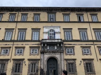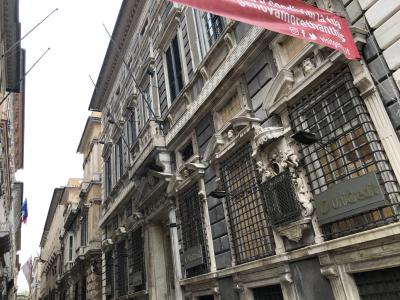 ツアーで見学しました。ゆったりとした坂道の両側に、バロックやルネッサンス様式の邸宅が並んでいます。ファザードはスタッコ(漆喰細工)や掻き画、彫像などで飾られており、今は銀行やオフィス、美術館になっています。