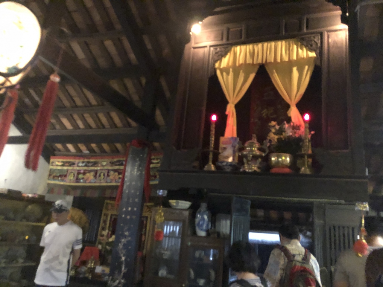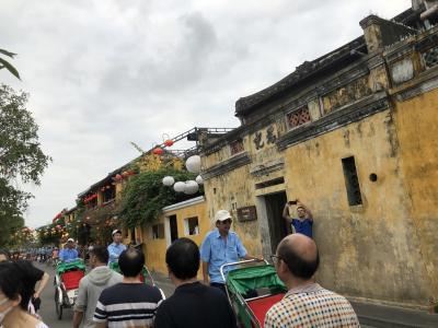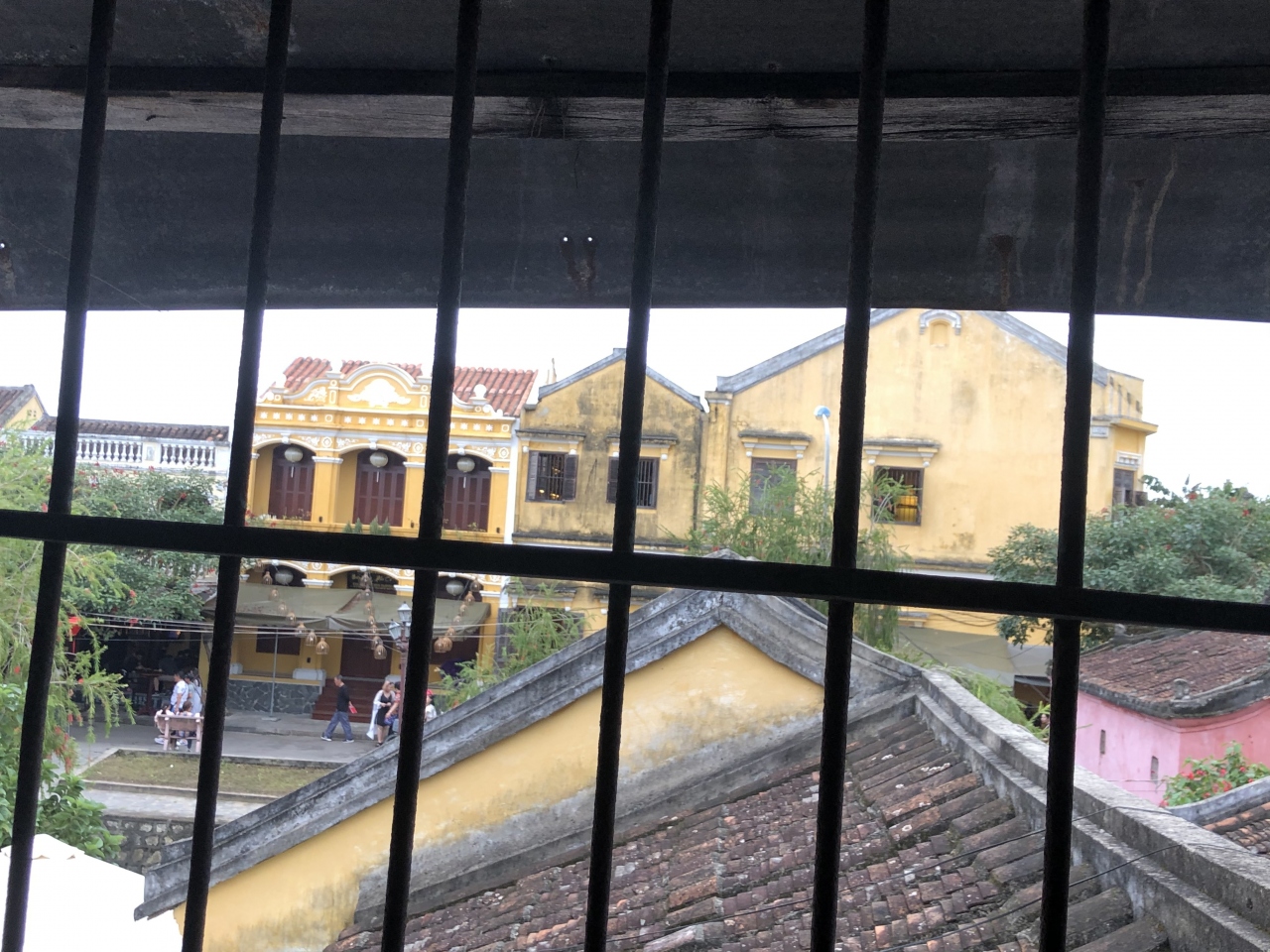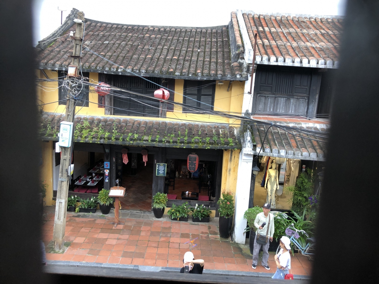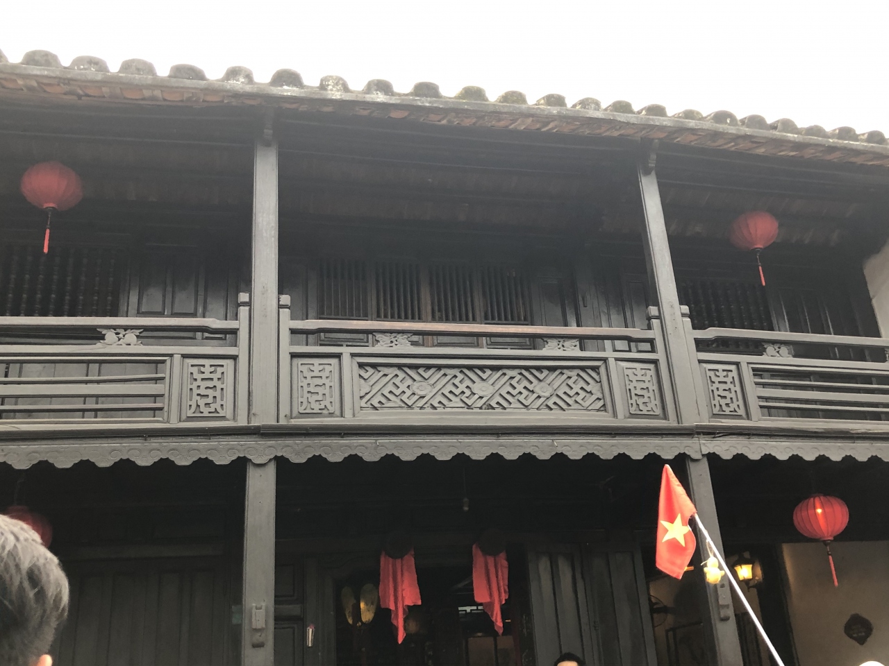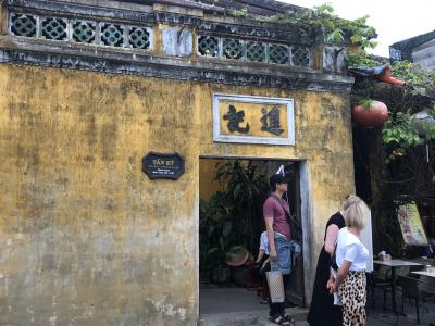 ツアーで通りました。バクダン通りに面している。黄色い壁の家です。漁師の家だったそうです。ウナギの寝どこのような造りです。ホイアンは川に面した街で、洪水が多く、その度に道具を2階へ運びあげたそうです。通りに面した家の壁に、その跡が記されていました。