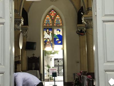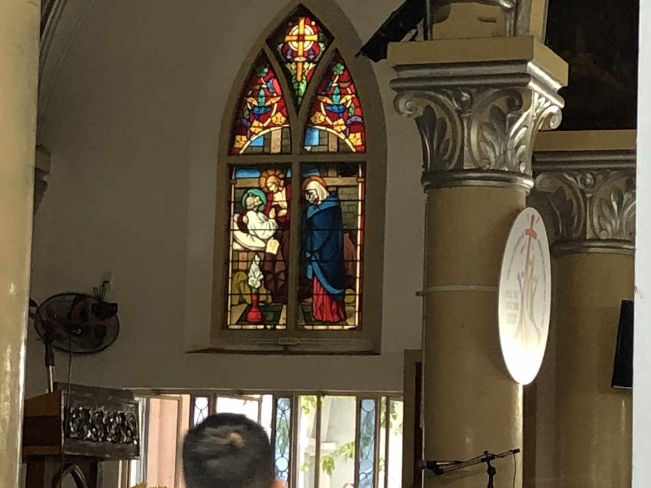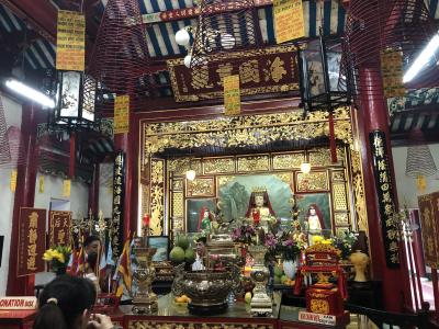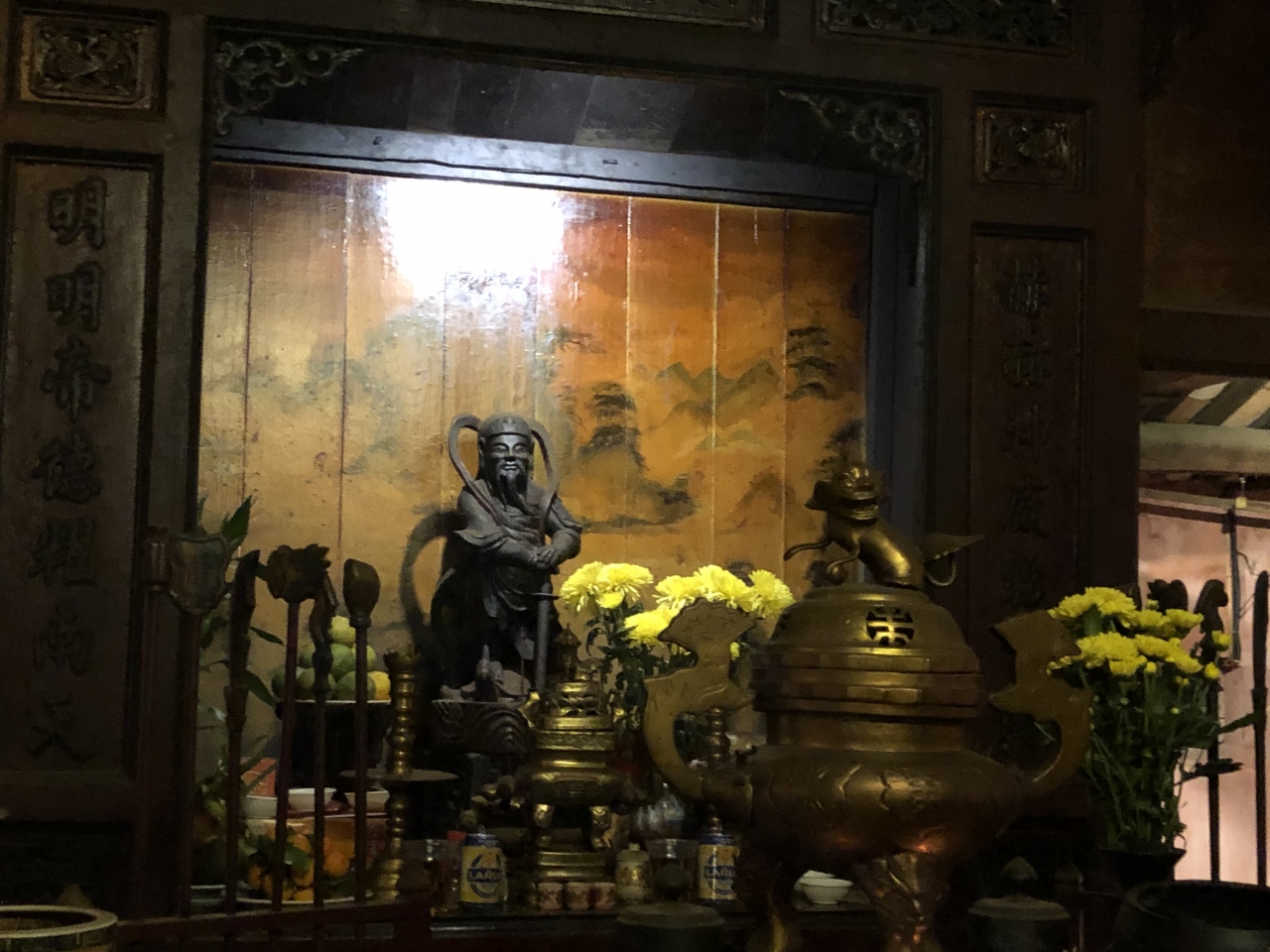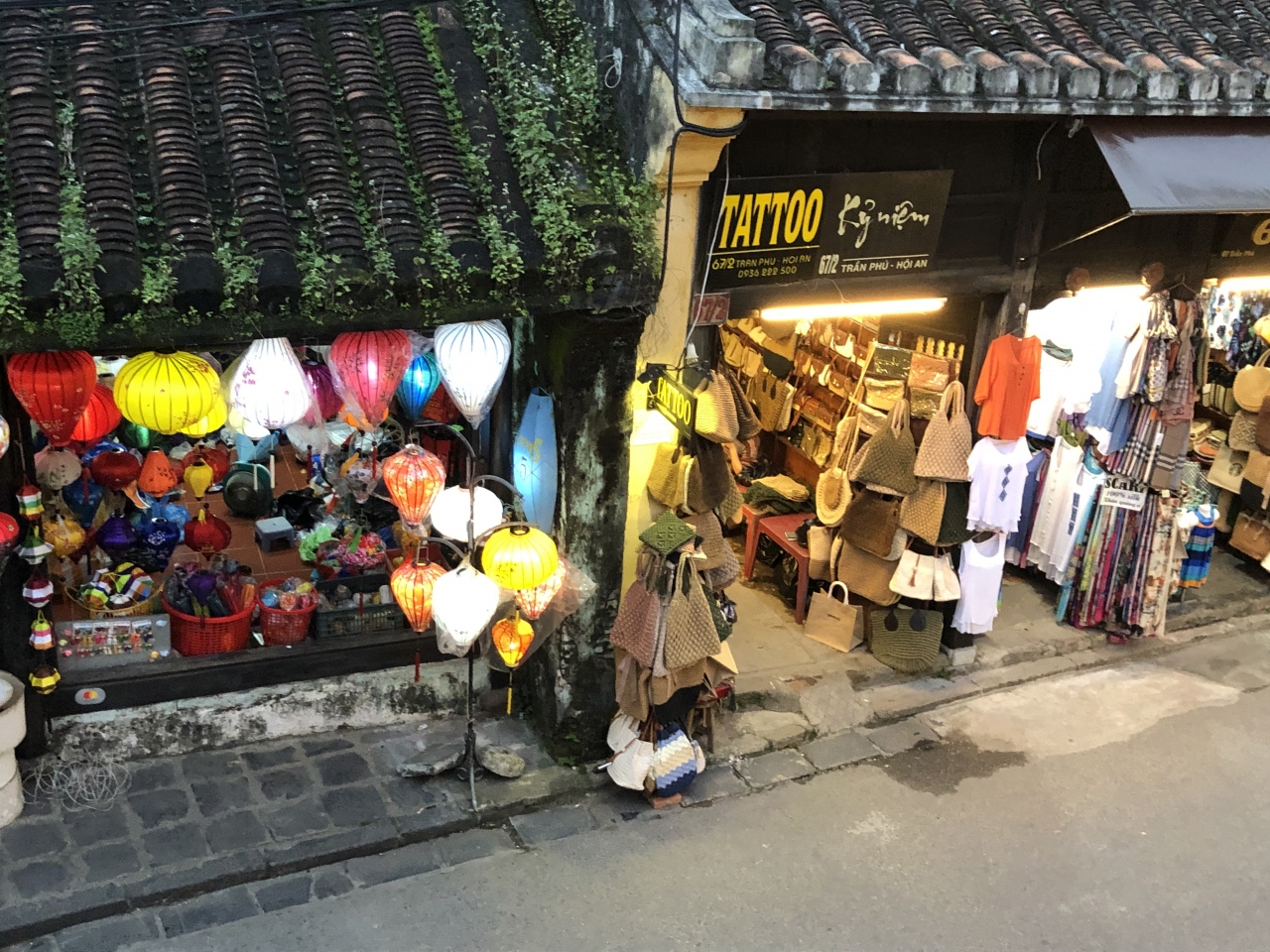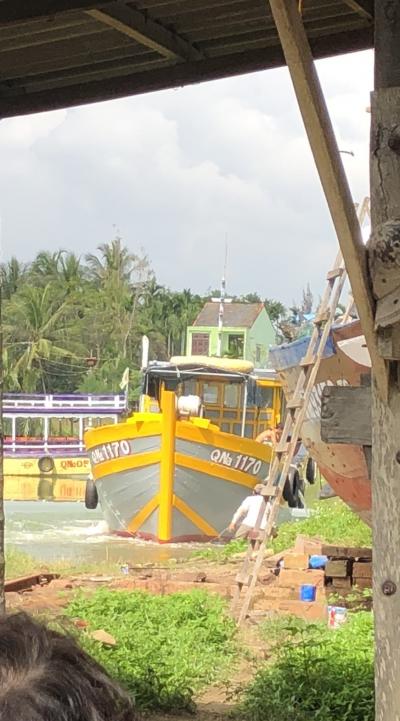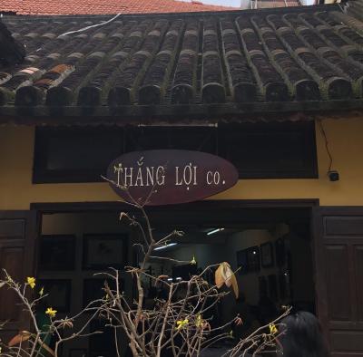 ツアーで通りました。バクダン通りに面している。黄色い壁の家です。漁師の家だったそうです。ウナギの寝どこのような造りです。ホイアンは川に面した街で、洪水が多く、その度に道具を2階へ運びあげたそうです。通りに面した家の壁に、その跡が記されていました。