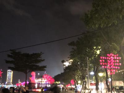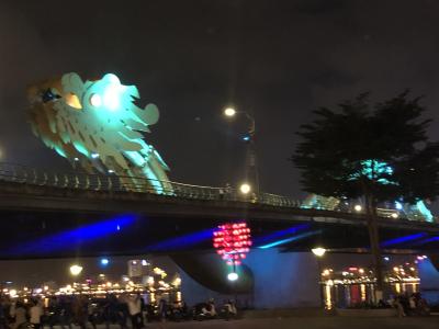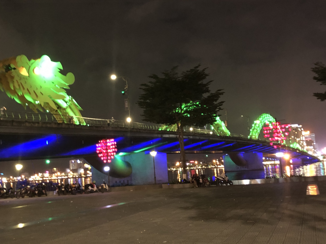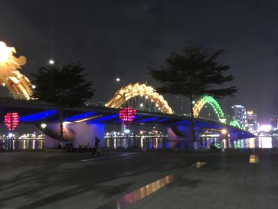 ツアーで訪問しました。龍のくねくねした形をした橋です。休日は火を吹くそうですが、平日だったので、火は吹きませんでした。色が徐々に、次々に変わっていくのが美しく楽しかったです。脇には赤いハート型のランタンが灯っていて、素敵です。