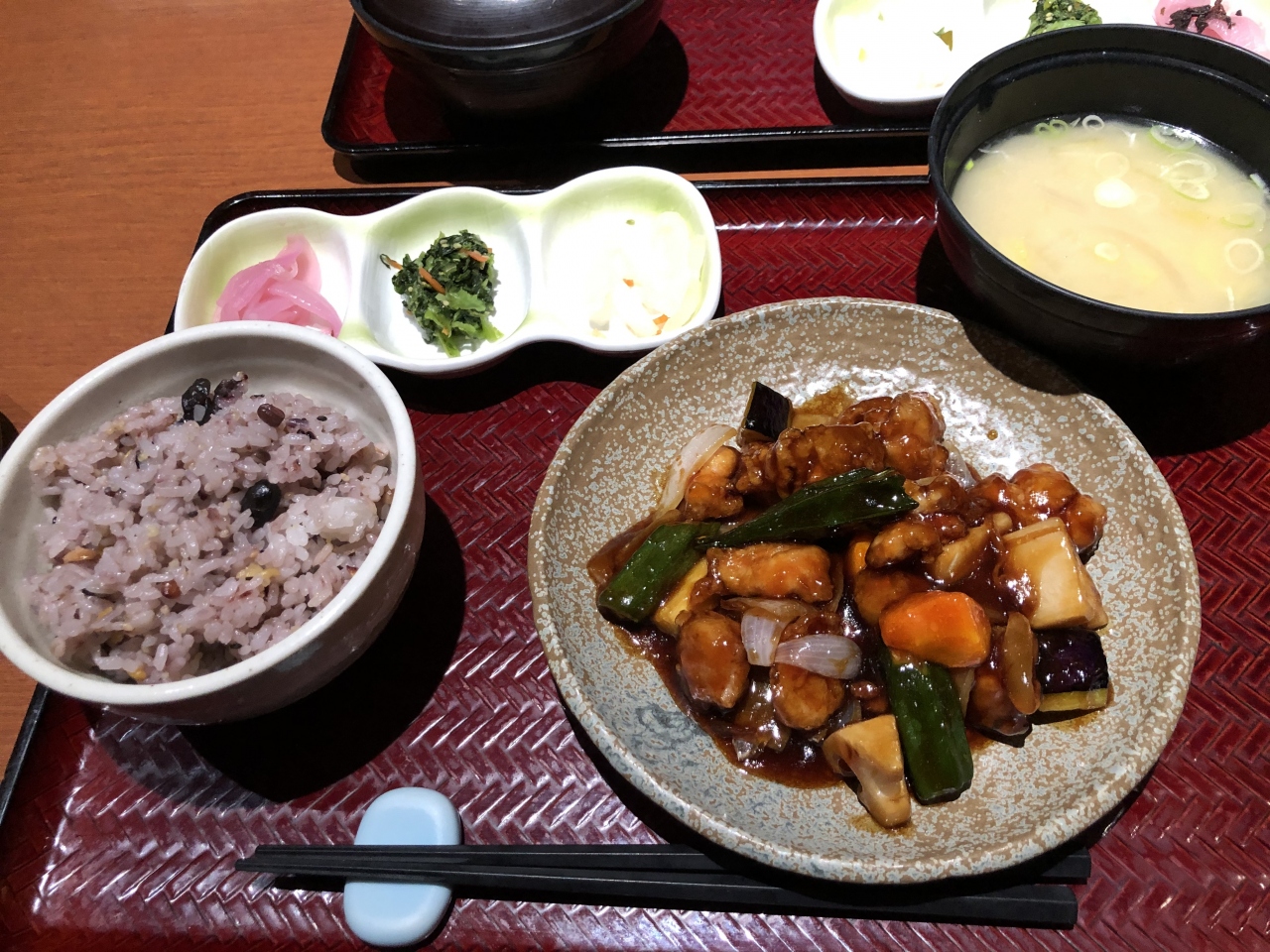 小倉駅アミュの6階にある定食やさんです。従妹と夕食を食べに来ました。私は鶏の黒酢炒めを注文。雑穀ごはんとみそ汁、漬物が付きます。それにドリンクバーを付けて1200円程度。栄養のバランスが良く美味しいです。