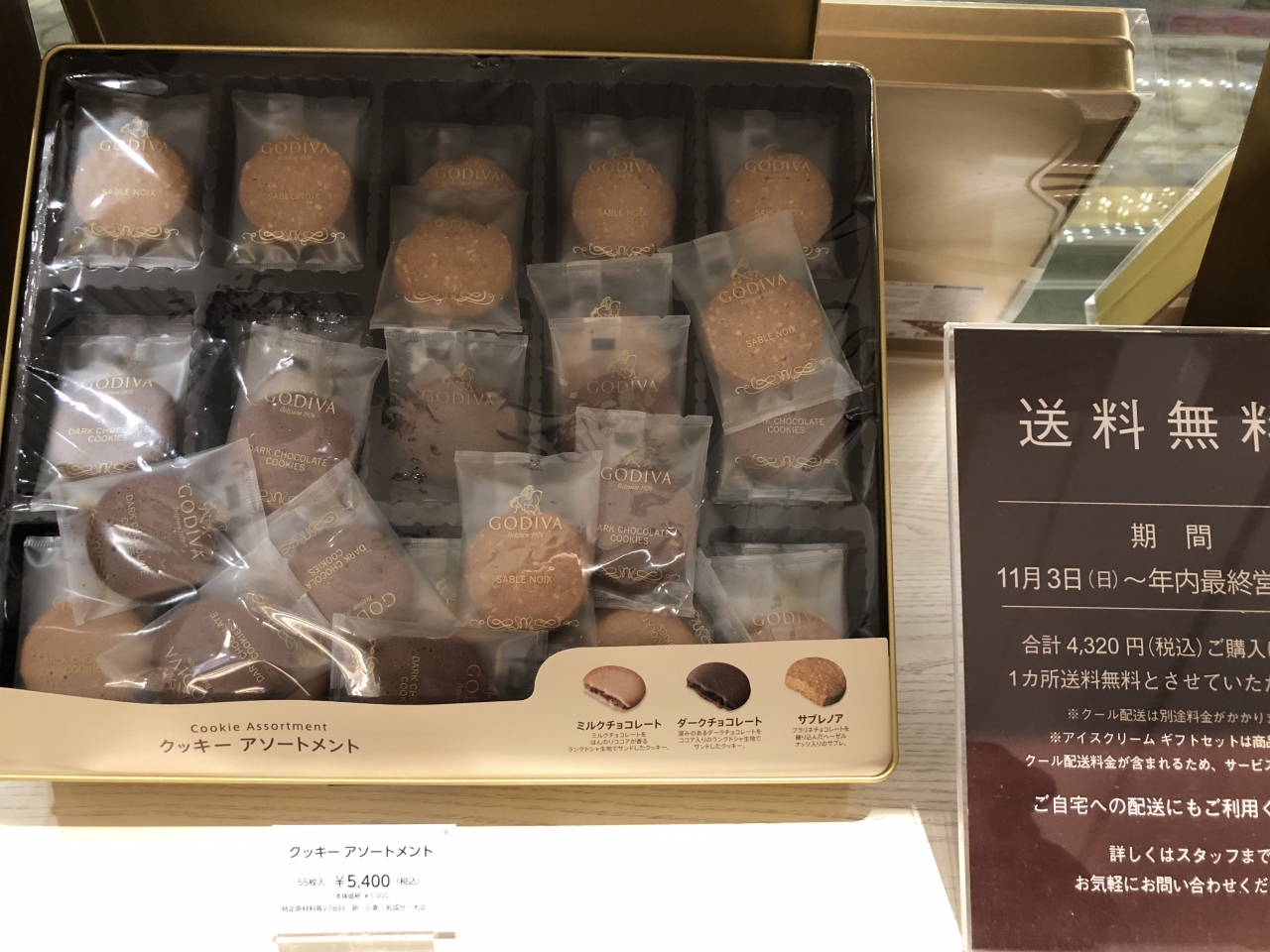 従姉にお歳暮の下見を頼まれて、見に行きました。天神南駅近くの、天神地下街にあります。予算を頭にいれながら、あれこれ見ていると、チョコレートクッキーの試食を1個くれました。お値段は高めですが、美味しかったです。