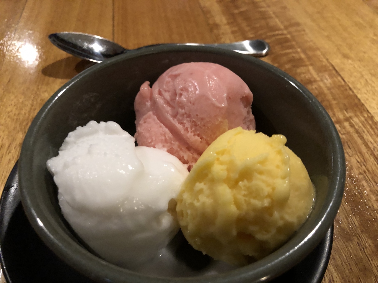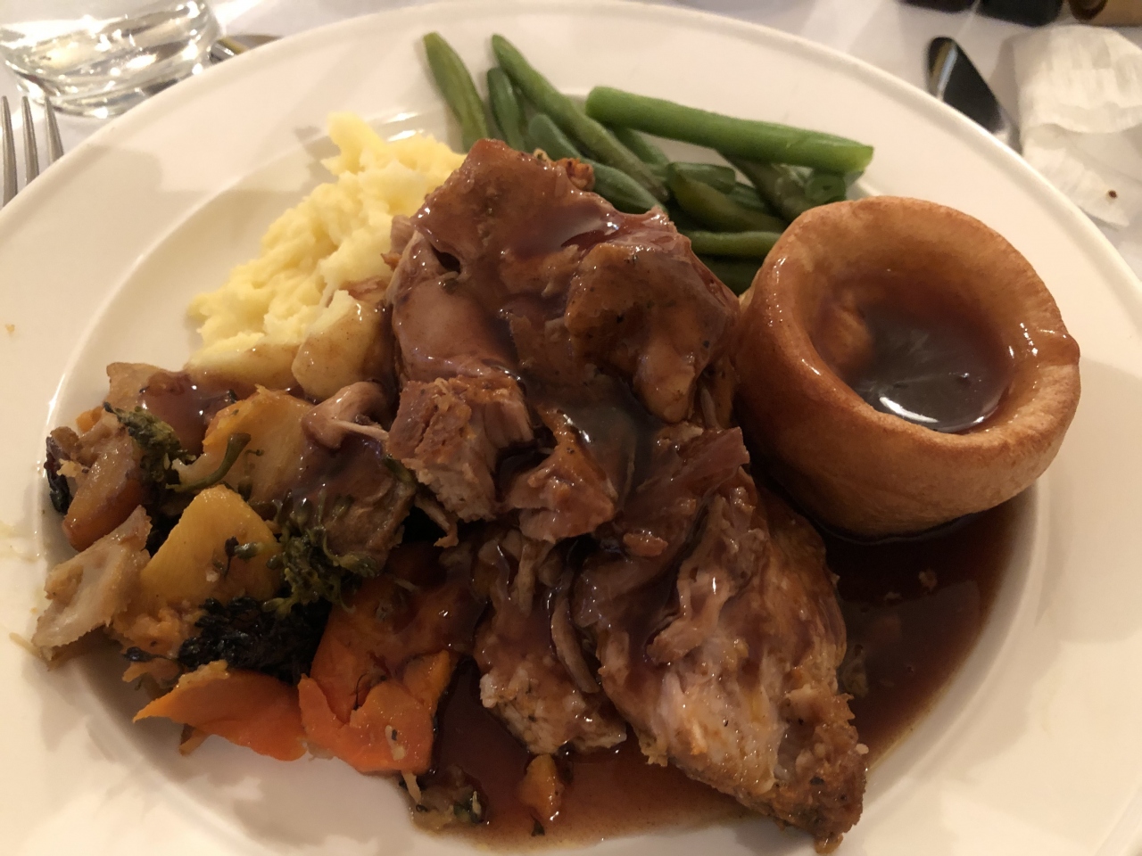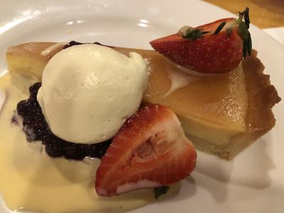 ツアーで別のホテルに宿泊したので、夕食と朝食だけ頂きました。夕食メニューは、2択。前菜は鶏手羽のグリル、メインが豚肩肉のロースト、デザートはオレンジとアーモンドのケーキ、紅茶を選びました。美味しかったですが、量が多すぎて残しました。