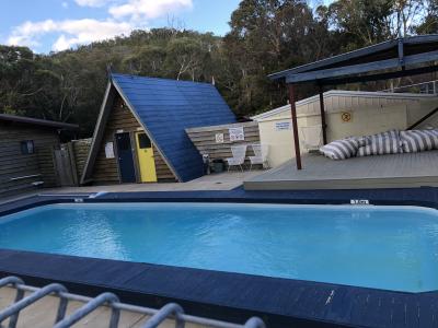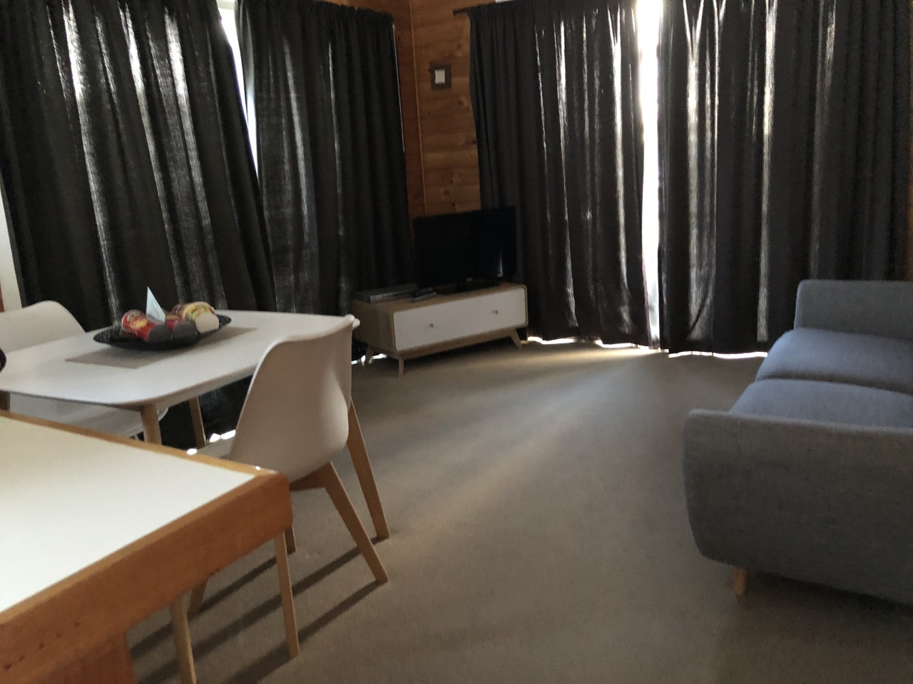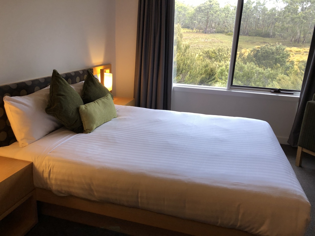 ツアーで2泊しました。ロッジで、ダブルベッド+シングルベッドがありました。バスタブはなし。部屋に暖炉風のガスストーブがあります。食事は2つのレストランがあり、どちらも美味しいです。ウォンバットやワラビーが近くにいます。