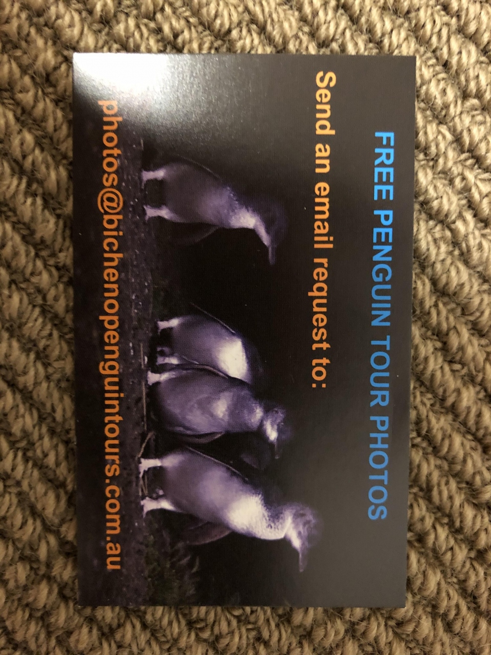 日本からのツアーに組み込まれていて、ホテル前から外人との混載ミニバンに乗って10分、海岸へ。ドライバーがガイドで英語で説明するのを、添乗員が通訳。自分の足元を照らす懐中電灯のみ使用可。ガイドが懐中電灯を時折照らし、海からグループで上がってくるフェアリーペンギンを見学します。40cmくらいでかわいいです。