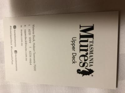 ツアーディナーで訪問しました。ホバートで一番シーフードが美味しいと言うことです。一階がカジュアルダイニング&オイスターバー、2階がレストラン。2階で頂きました。メニューはムール貝入りスープ。生カキなどのシーフード盛り合わせ、ジェラート3種盛、紅茶。味は美味しかったですが、量が多すぎて残しました。サーブに時間がかかり食べ終わるまで2時間かかりました。
