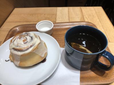 従姉と食後のお茶をしに行きました。博多アミュの地下にあるお店です。シナモンミルクロール大430円を半分こ。甘くて温かくて美味しかったです。紅茶はティーパック。お湯だけお代わりし、2杯頂きました。居心地が良かったです。