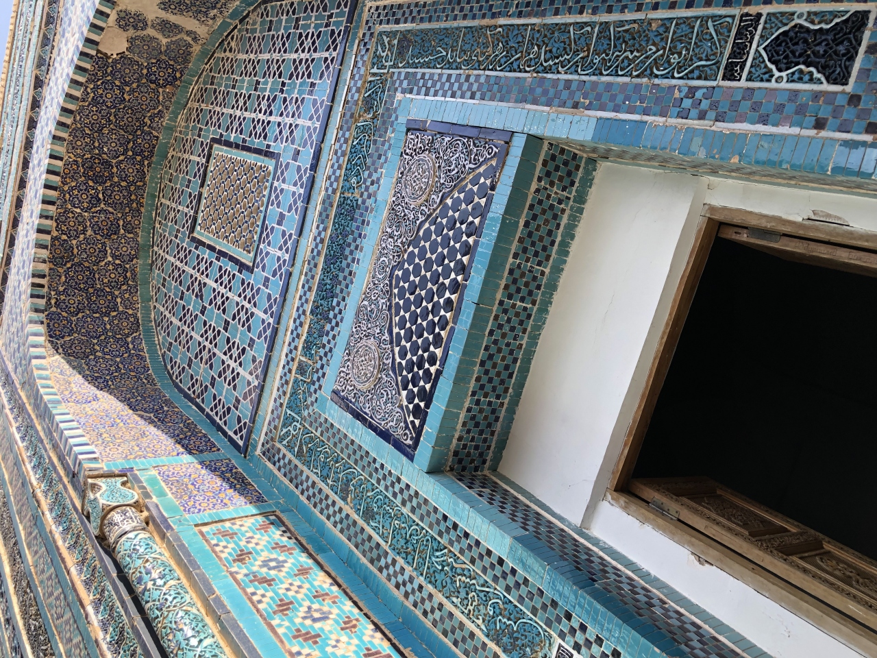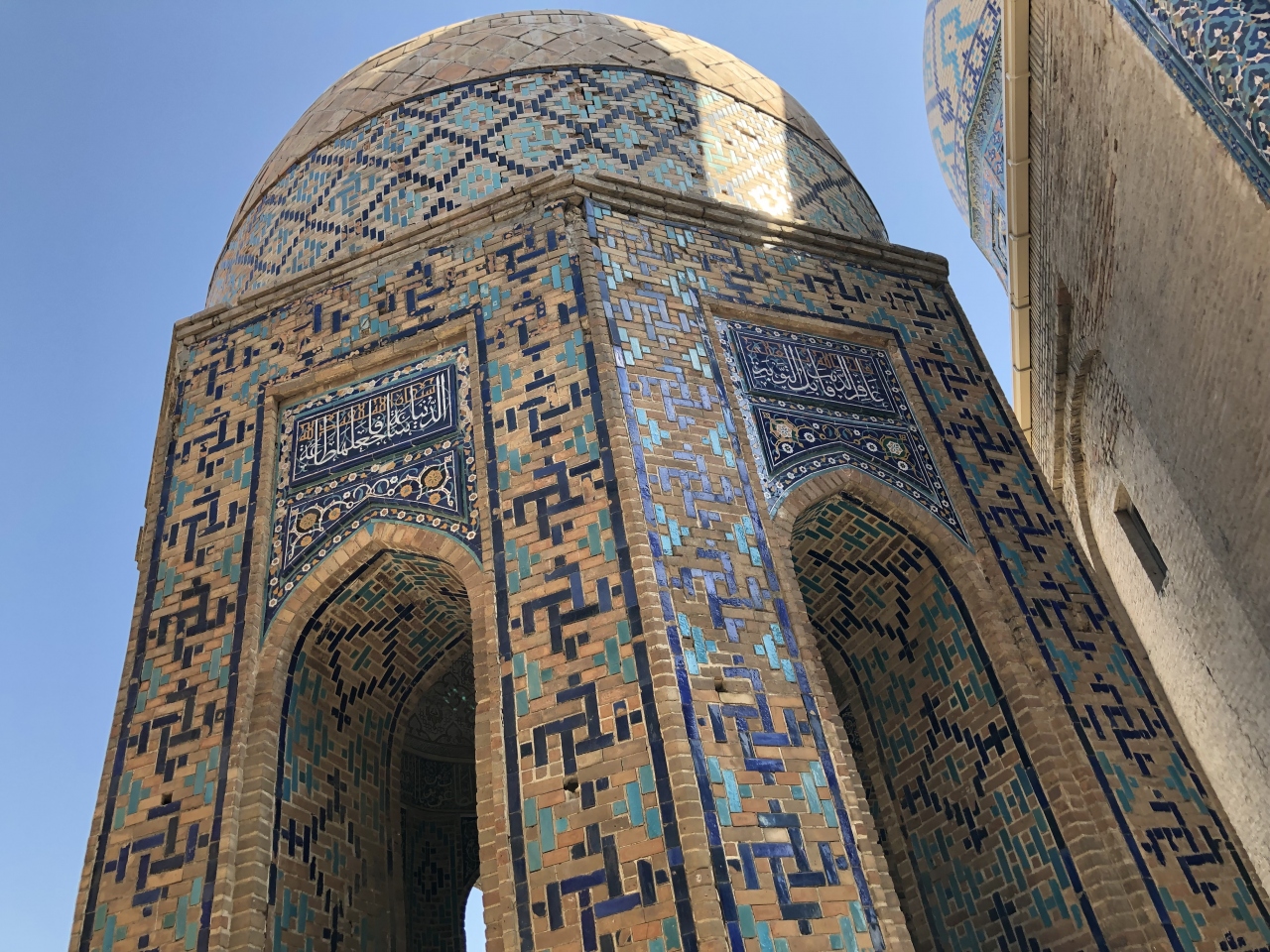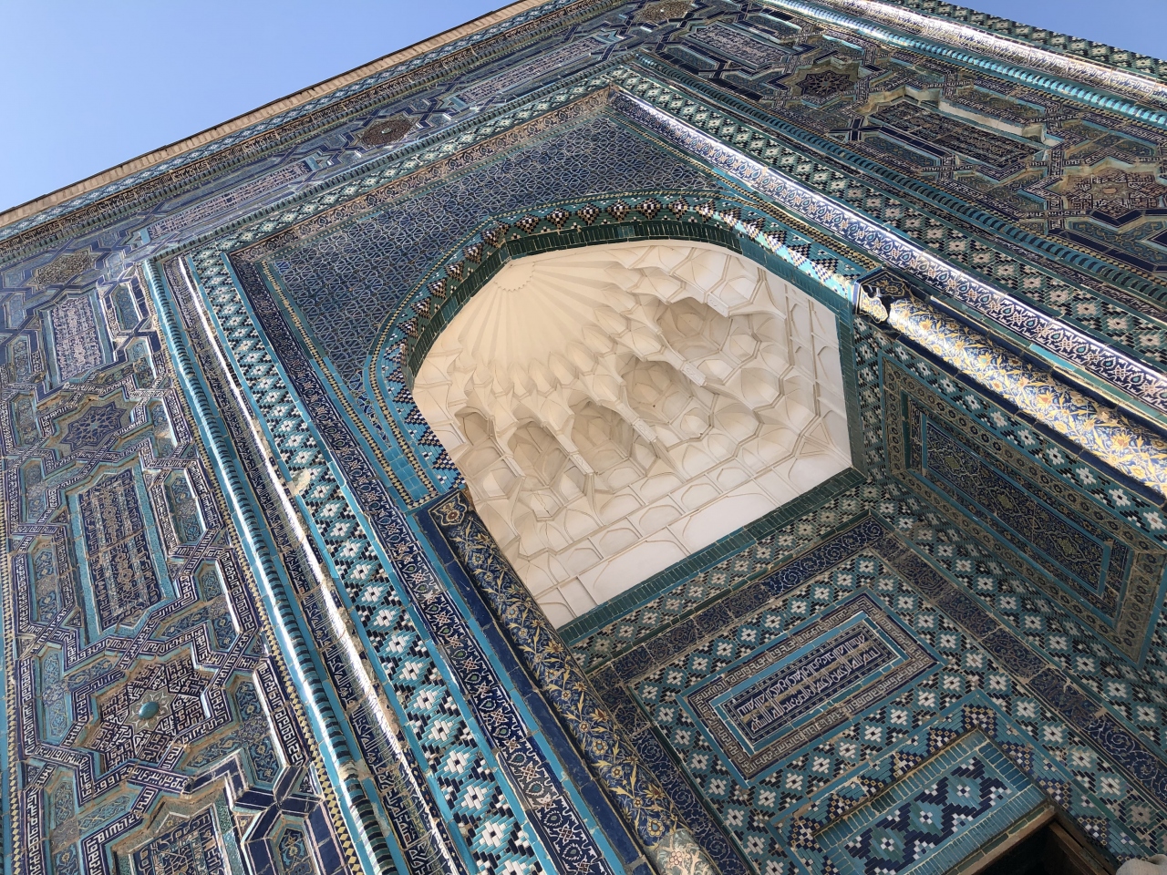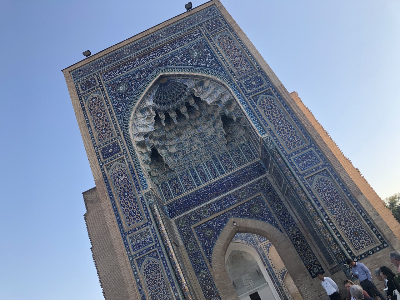 ツアーで訪問しました。様々な青・蒼・空色のタイル、透かし彫りの霊廟で、私はこれを見るためにウズベキスタンに来ました。ティムールゆかりの人たちの霊廟がほぼ一直線に並んでいます。行きに数えた階段の数と、帰りに数えた物が同じだと天国に行けるそうです。