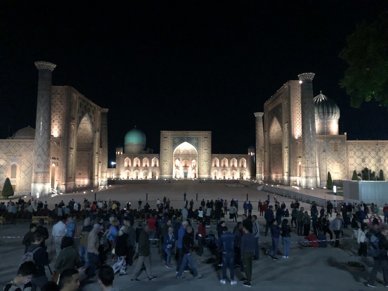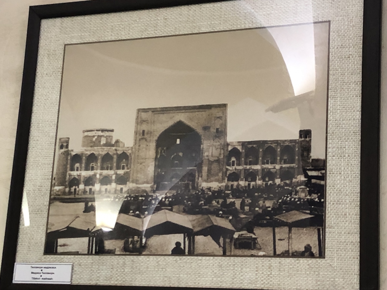 ツアーで訪問しました。レギスタン広場に向かって左にある建物で、広場の中で最も古い、1420年に建てられた建物です。昔は神学校で、ウルグベクが学芸を振興して建てたものです。今はお土産物を売るショッピングセンターになっています。