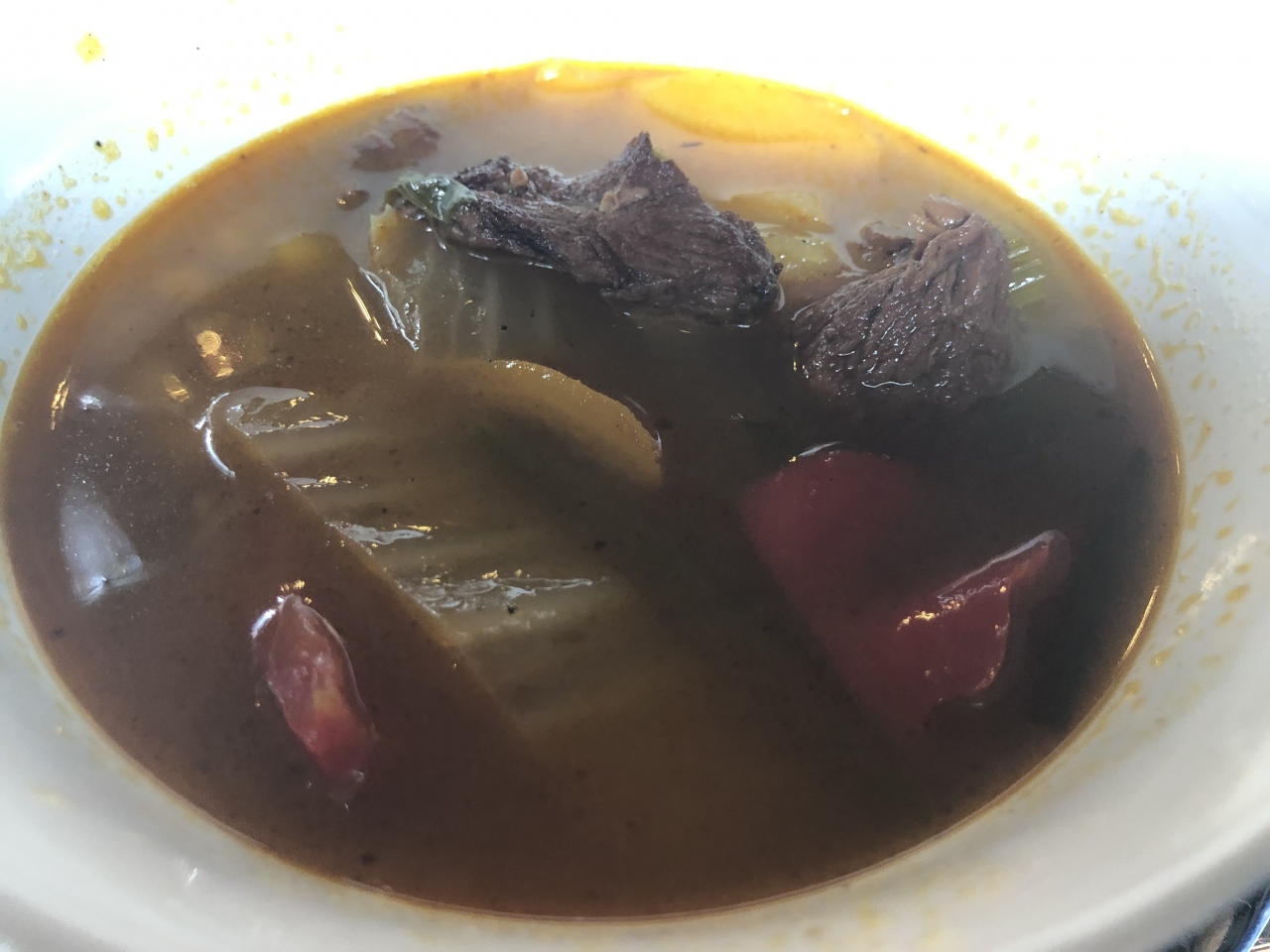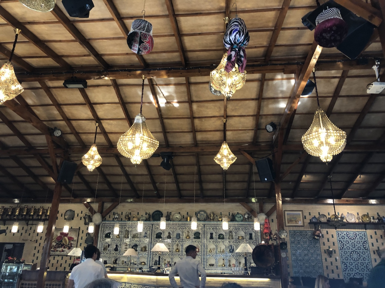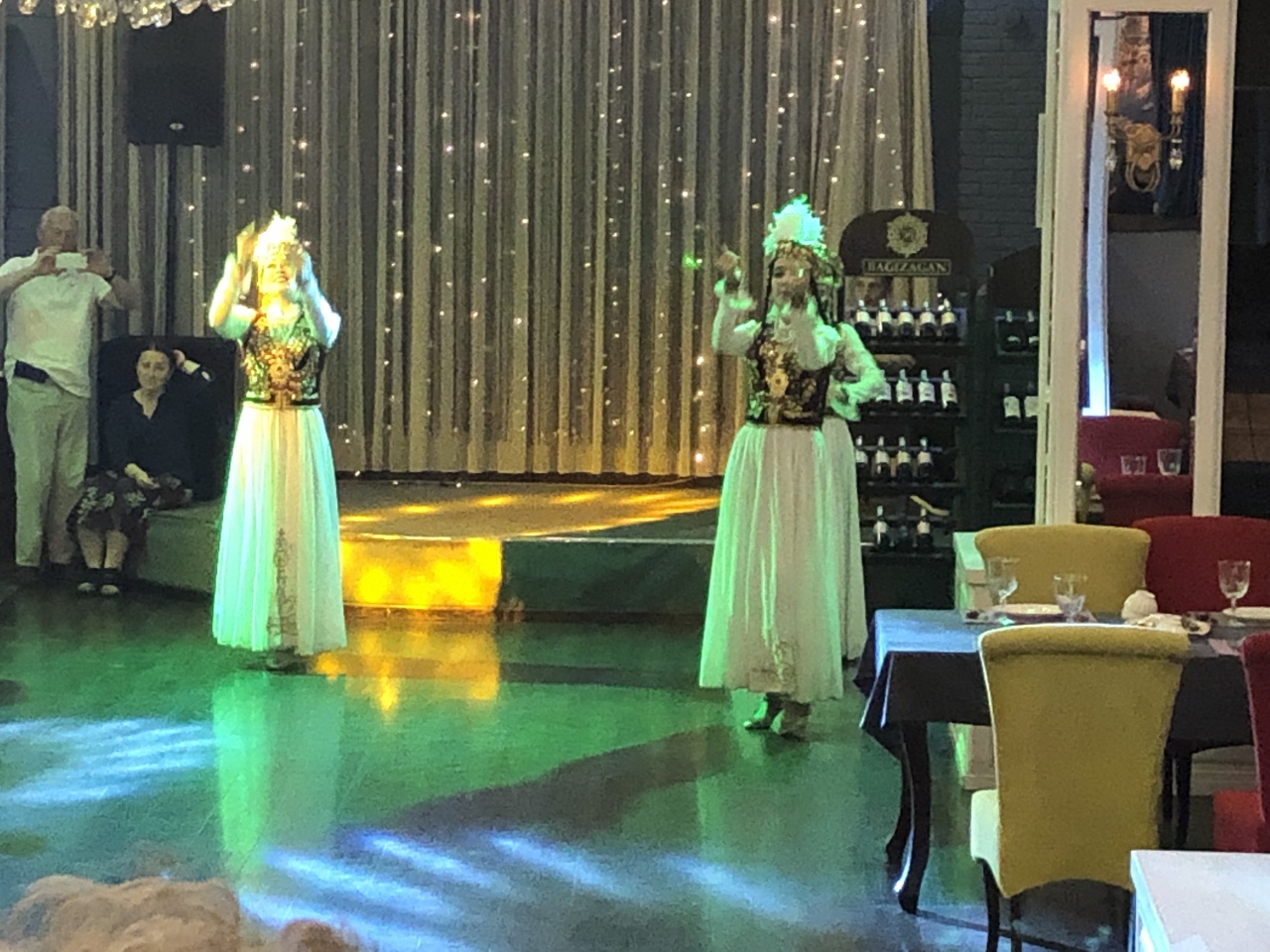 おそめのツアーランチで訪問しました。スポーツセンター内、向かいにあります。他のお客が帰ってしまったので、各テーブルを見ると、スザニのテーブルクロスがかかっていました。内装もお洒落です。メニューはスープ(マンパール)、牛肉の炭火焼き、スイカと瓜。お肉が柔らかく美味しかったです。