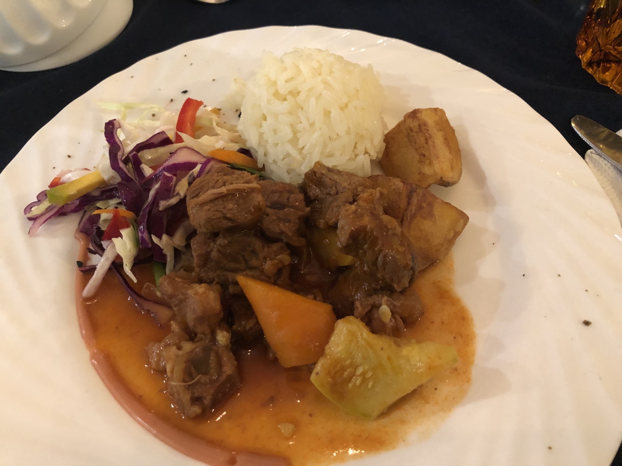 ツアー最後の晩餐で訪問しました。団体が幾つか入っており、広いレストランです。民族舞踊を見ながらのディナーでした。メニューはきのこのクリームスープ、牛肉のトマトソース煮込み、ケーキとアイス。味は普通です。
