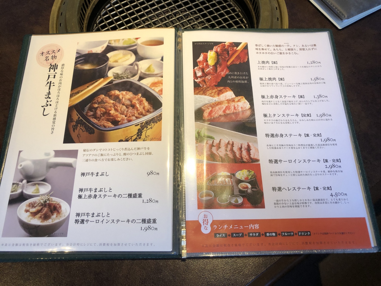 お肉が食べたいと言う私のリクエストで、友達が探してておいてくれました。小倉コレットの駐車場の裏側、公園の前のビルの2階にあります。予約をしていませんでしたが、平日のお昼のせいか、すぐ個室に入れました。牛まぶし赤身ステーキ二種1280円。お肉が柔らかく、美味しかったです。食後にコーヒーも付きました。