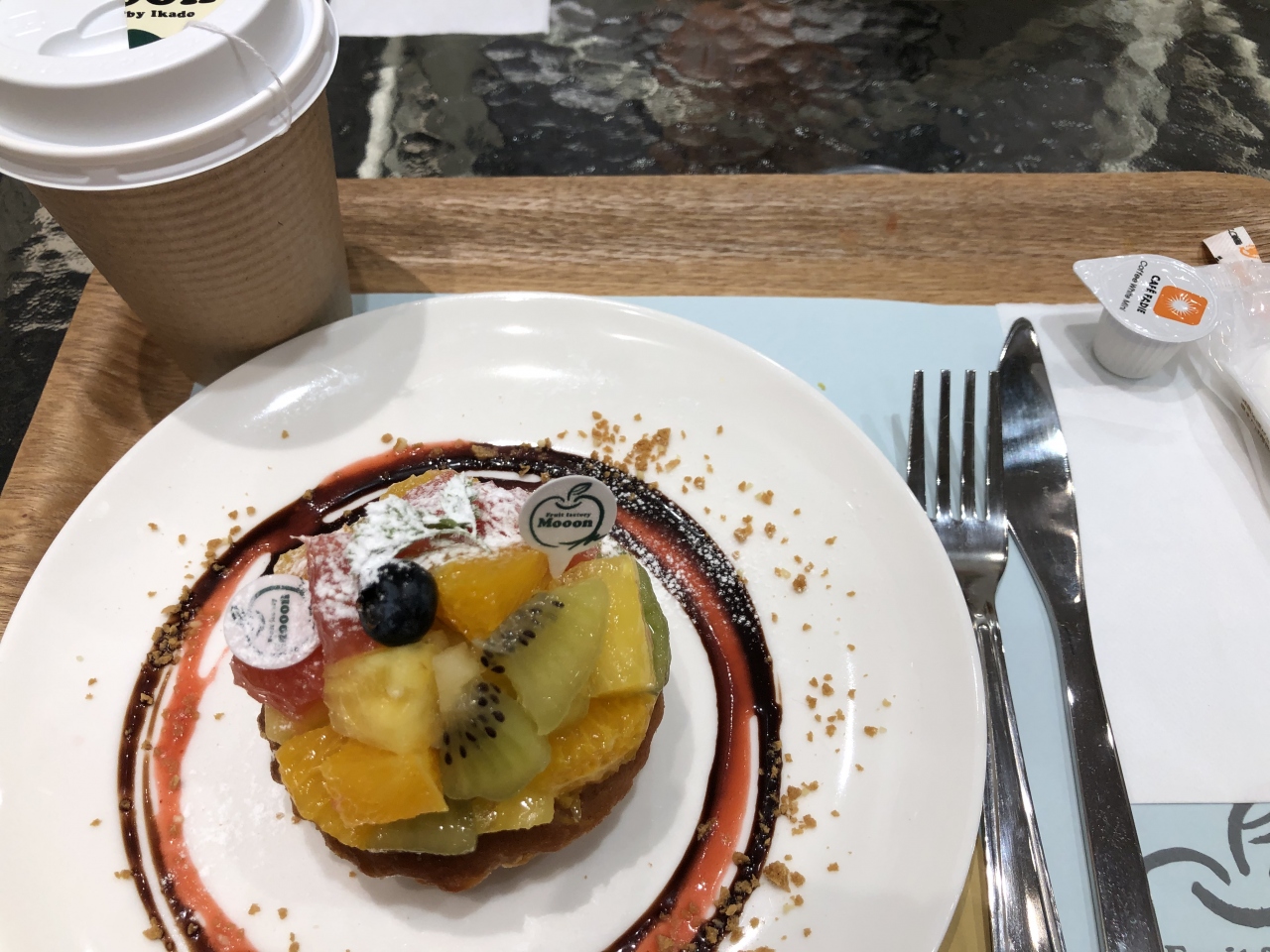 同じリバーウォーク建物内の市民劇場で観劇の後、お茶しに寄りました。フルーツ専門店なので、果物が安くて美味しいです。イチジク313円はお土産にしました。フルーツタルト450円と紅茶200円をここで頂きました。美味しかったです。