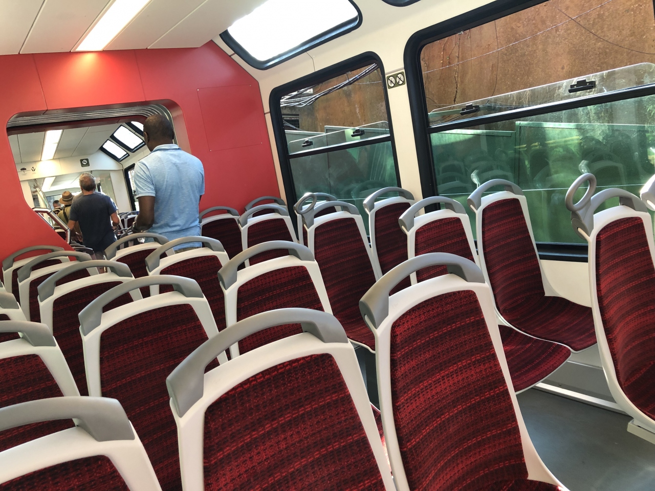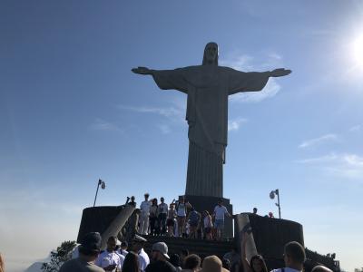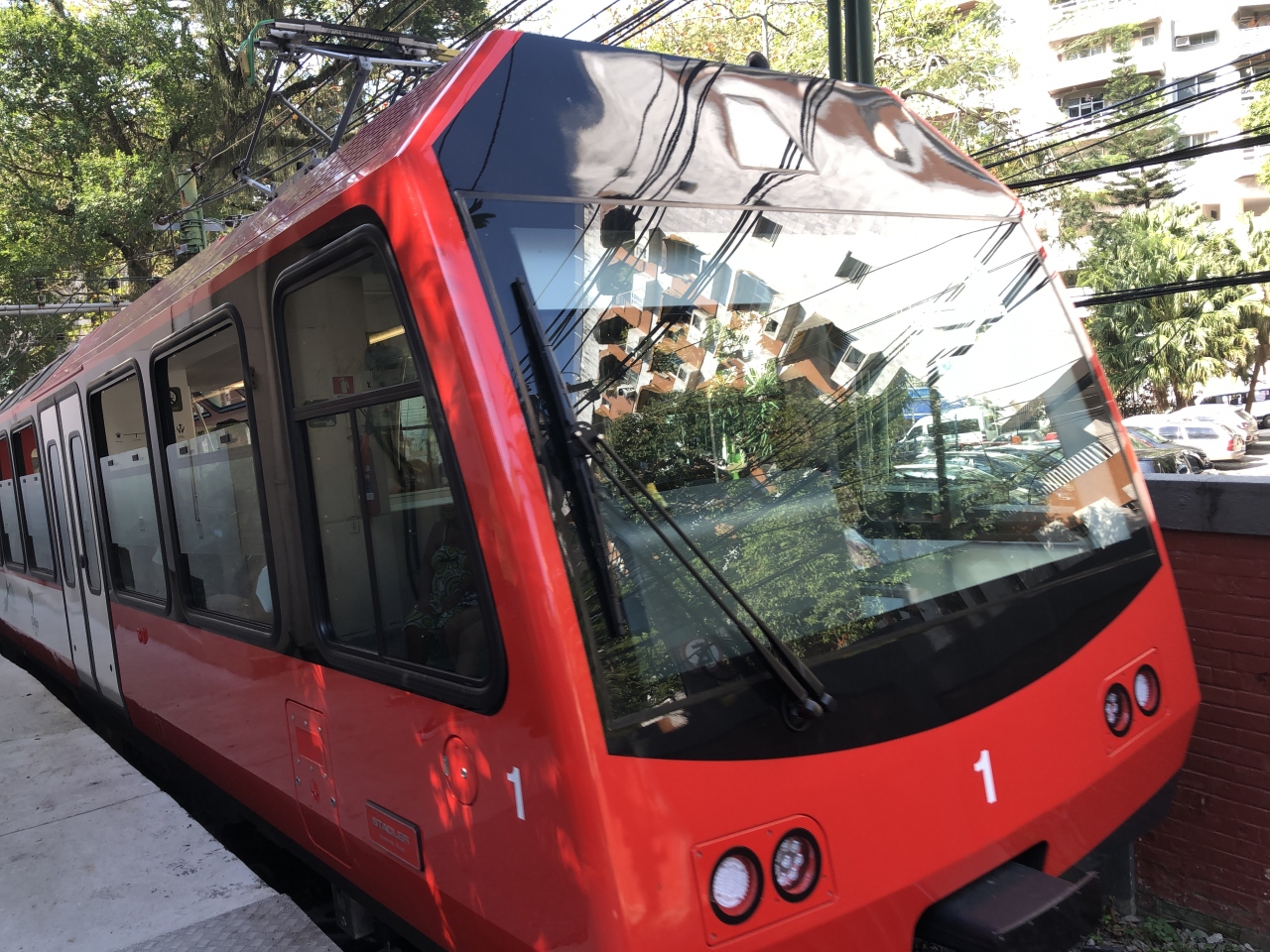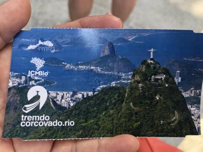 コルコバードの丘へ行くため、ツアー全員で乗車しました。進行方向に向かって右側の方が眺めが良いです。ゴトゴトとゆっくり登ります。終盤眼下に街の景色が広がるのが美しく、楽しいです。10月から新型車両になるそうで、9月は試運転とか。新しく綺麗です。