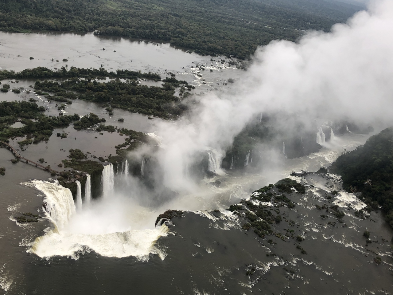 ツアーでブラジル側から歩いて見学、オプショナルでヘリコプター(22000円)に乗って見学しました。世界三大名瀑の最大のもの。幅2700m、落差82m、滝の数275個。さすがの大迫力。滝のそばではびしょ濡れになりました。