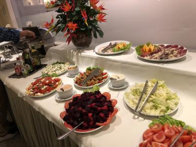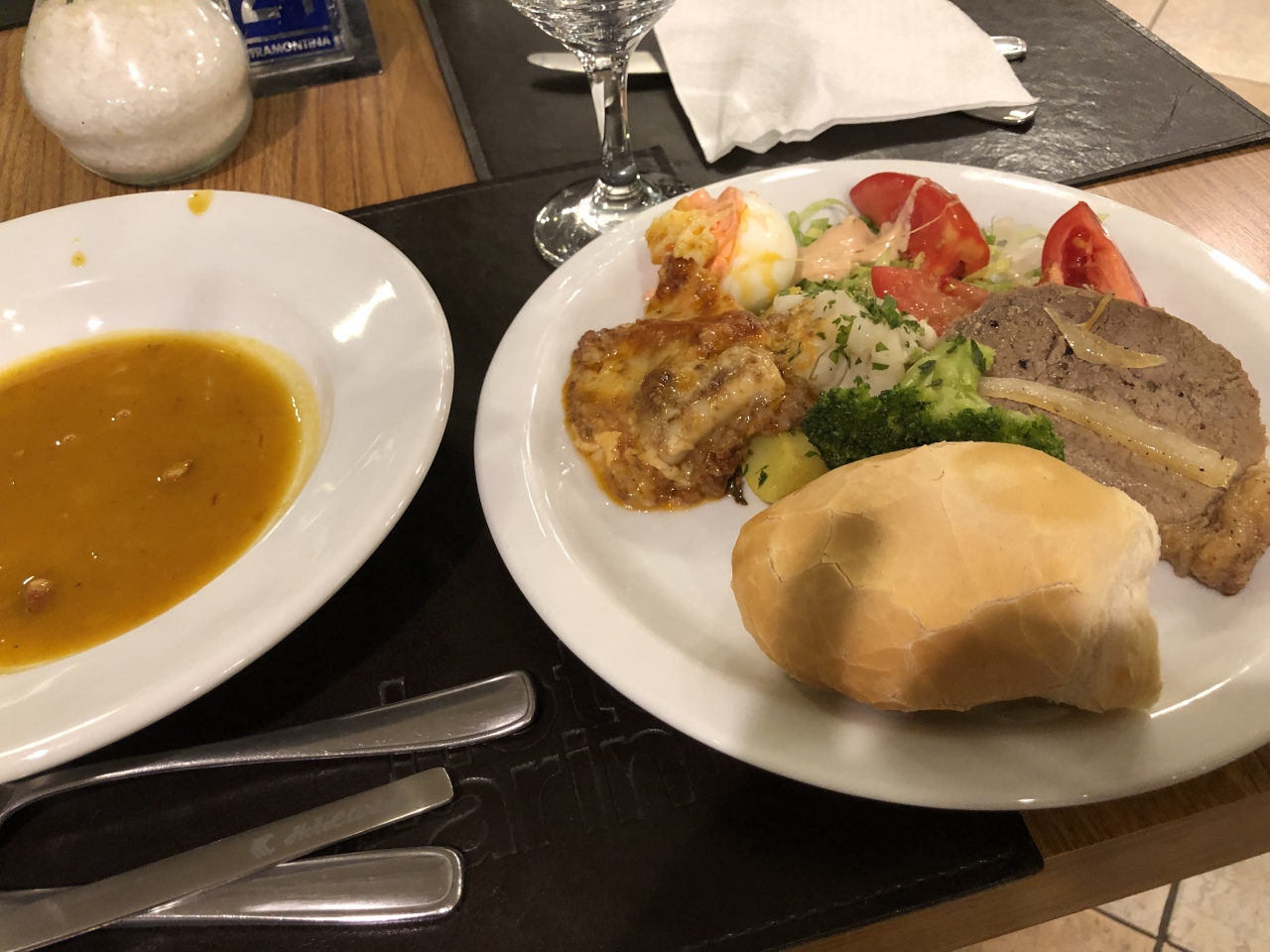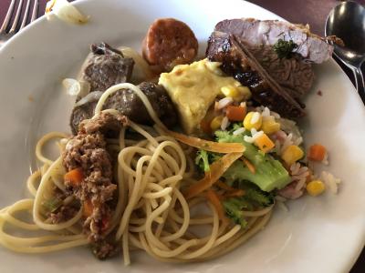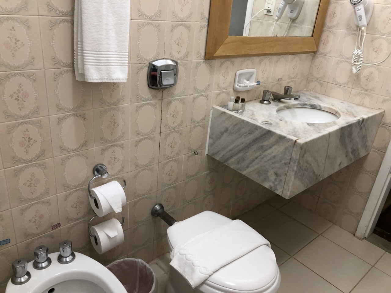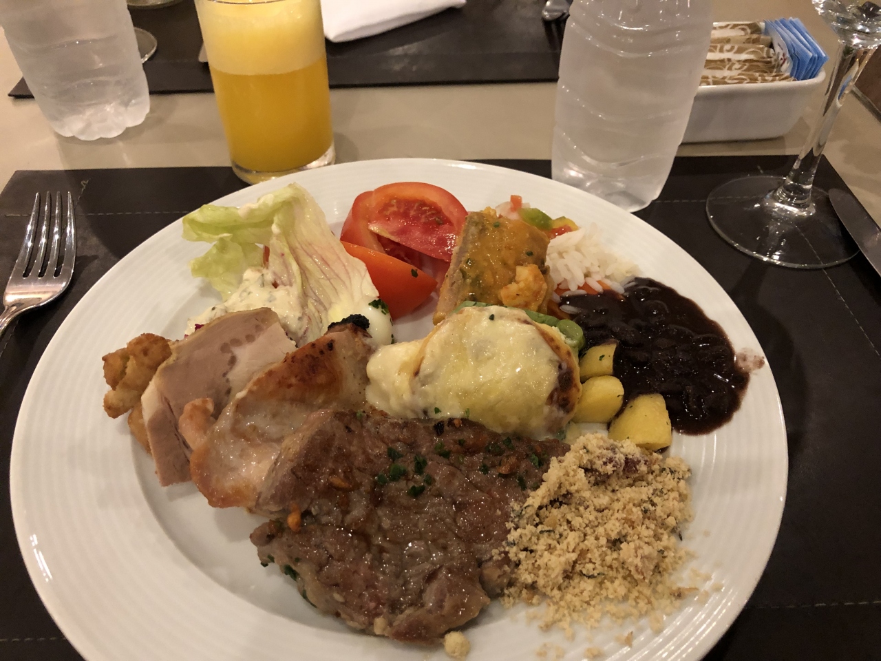 ツアーでブラジル側のイグアスの滝を見学した後宿泊しました。翌日はアルゼンチン側からの見学です。夕食はブッフェで、大勢のお客がいました。味は普通。部屋にはバスタブがあり、荷物を広げるのにも十分な広さでした。