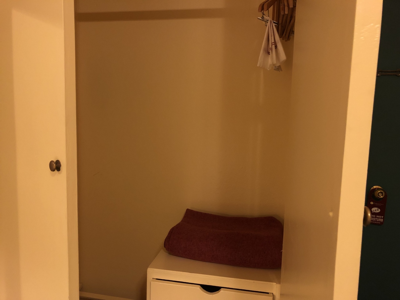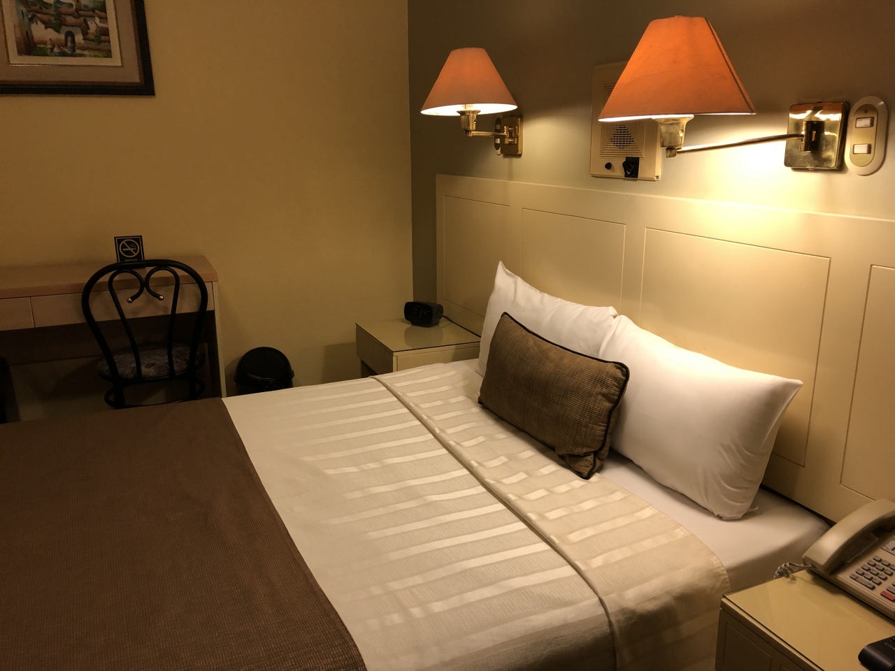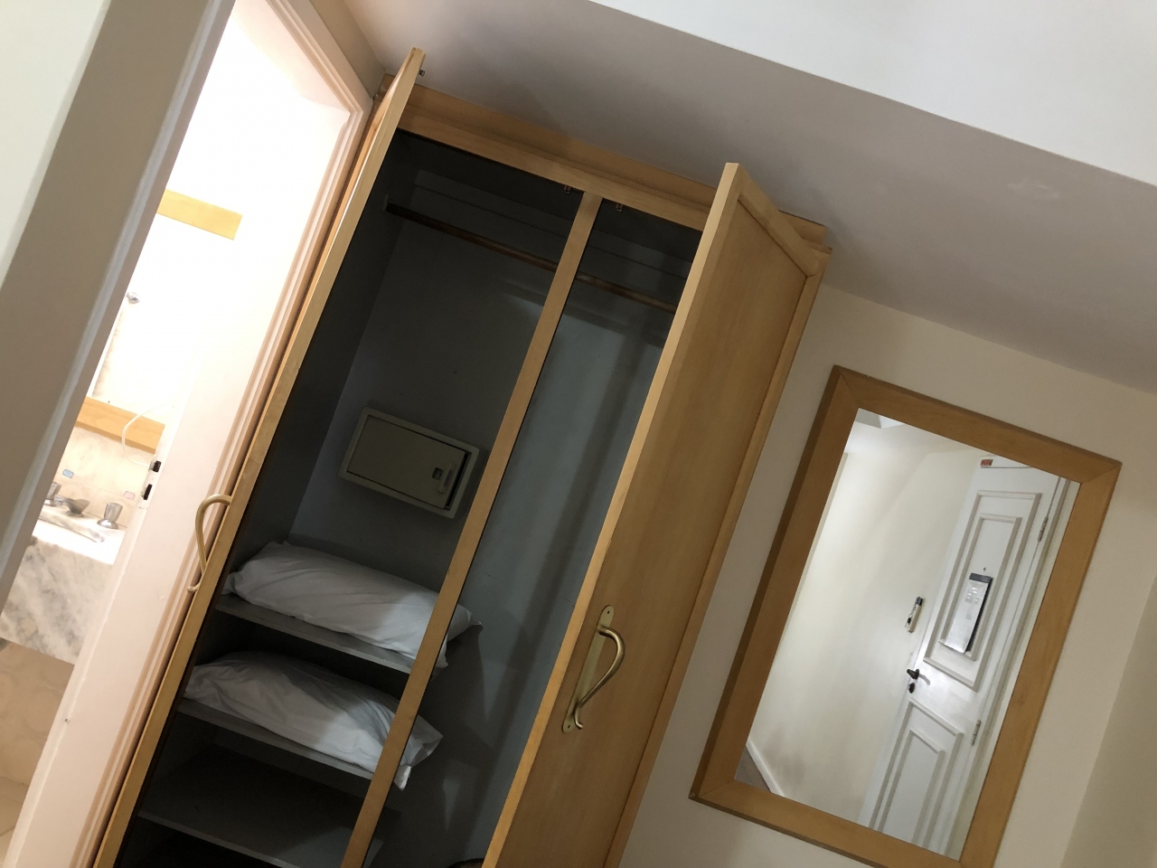 ツアーで4泊目と7泊目に宿泊しました。4泊目は日付が変わってからのインでダブルだったのでキャリーは広げられましたが、7泊目はトリプルだったので、空いているベッドに広げ、早朝出発しました。本当にシャワーを浴びて寝るだけの利用だったので、十分でした。部屋にはティッシュもゴミ箱もありませんでした。