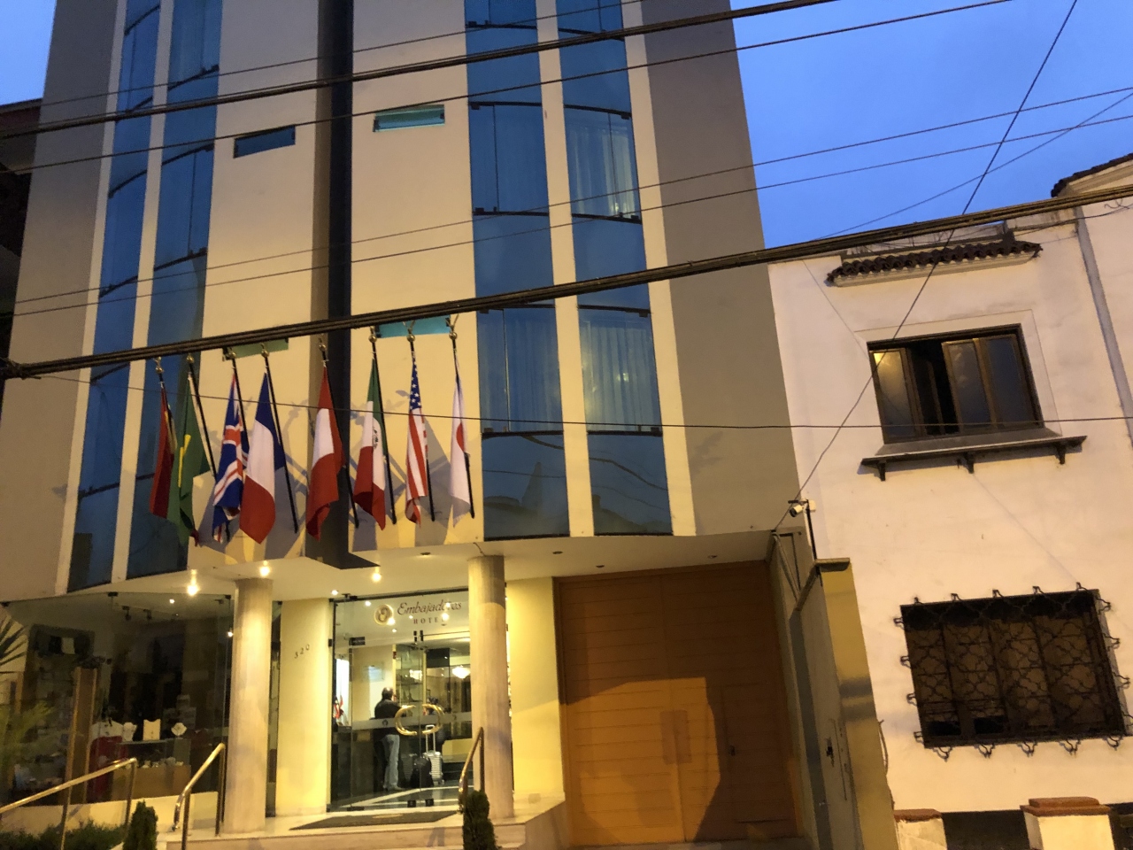 ツアーで2泊しました。メインストリート沿いにあります。部屋はツイン。キャリーが広げられる広さです。レストランは7階で朝は山が目の前に見えます。夜はもう片側で食事しましたが、上部に窓ガラスがなく、寒かったです。部屋にも暖房器を入れて貰いました。