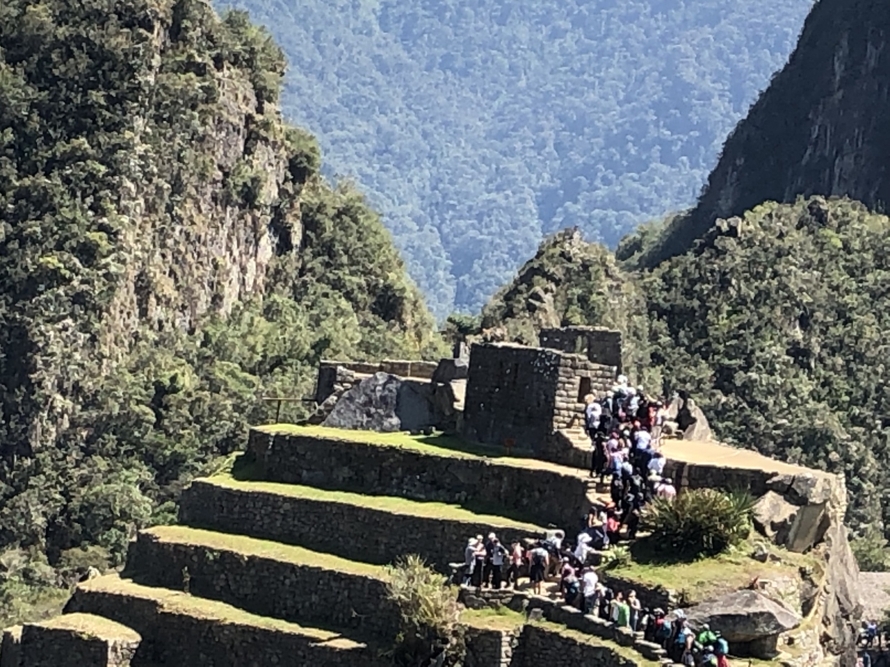 ツアーで反対側から眺めました。入場するのには時間制限があり、大勢の人がありのように一列になって、行列しているのが見えました。崩壊を防ぐためらしいです。マチュピチュの最高点にあり、高さは1.8mだそうです。
