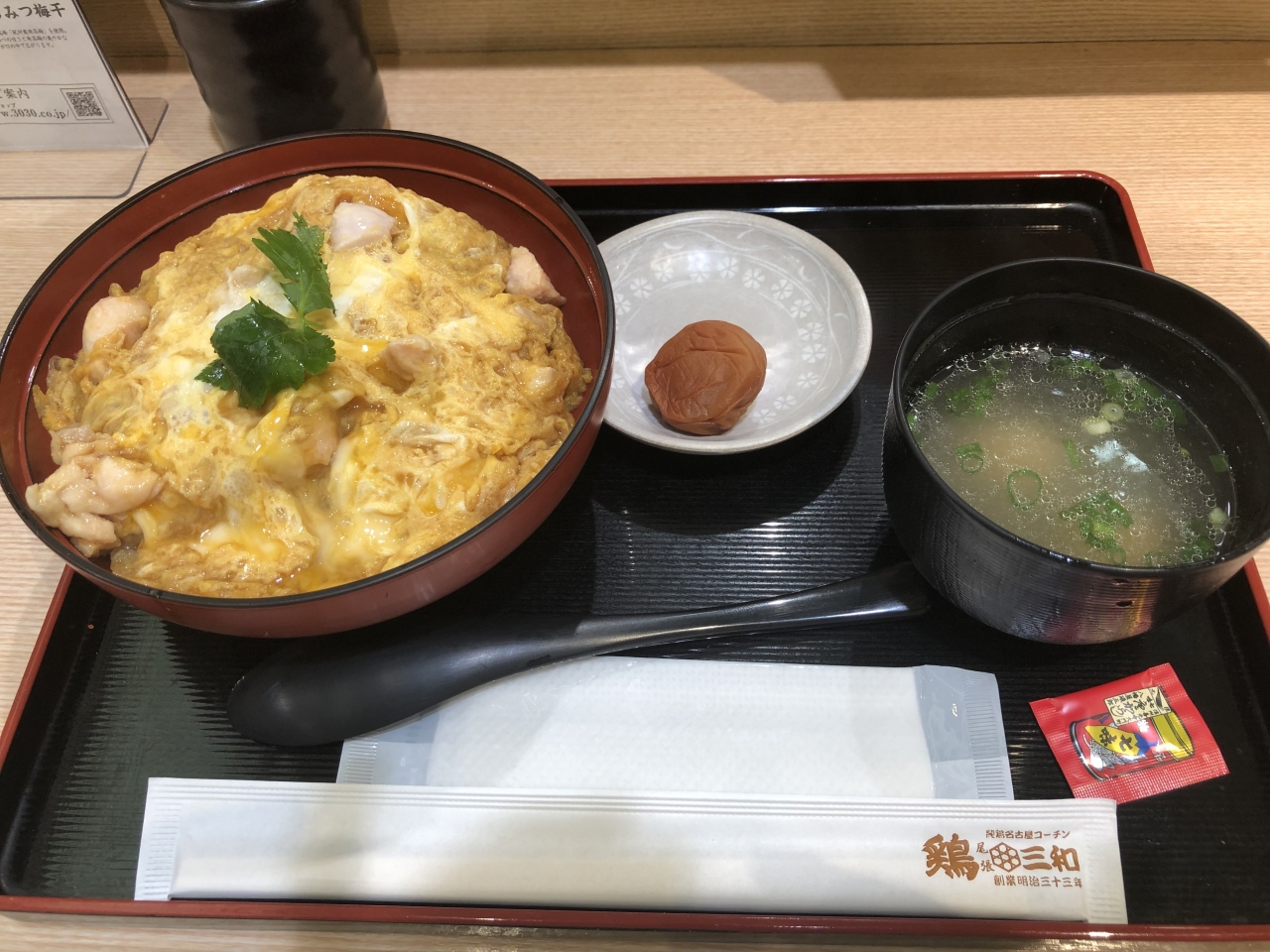 JR千葉駅前の、千葉そごう地下一階のお店です。土曜の正午少し前に訪問しました。混む前にと思って早目の訪問です。カウンターは空いていてすぐ座れました。木曽名水親子丼をオーダー。842円。フワッとろの親子丼と、鶏肉団子と、蜂蜜梅干し1個。さっと出て来て、さっさと美味しく食べて離席しました。