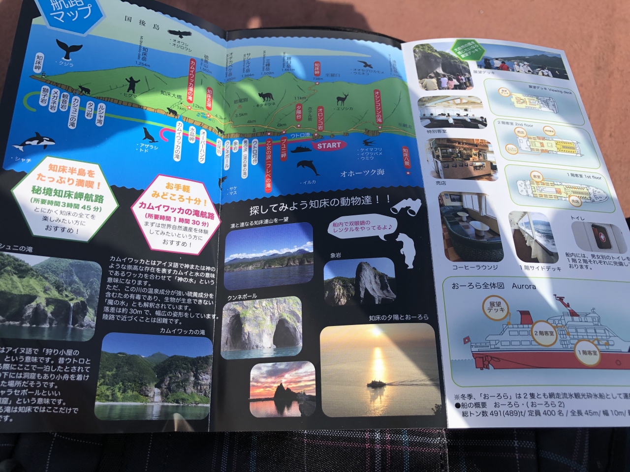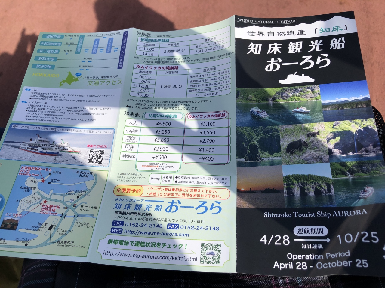 ツアーで乗船しました。カムイワッカの滝航路は90分で団体料金は2790円。好天で風も心地よかったので、ずっと双眼鏡を片手に甲板に座っていました。残念ながら、動物は見えませんでした。ごつごつした岩肌や流れ落ちるカムイワッカの滝などが見えました。