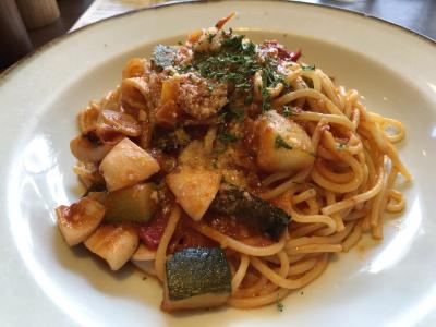 土曜のランチで訪問しました。JR津田沼駅徒歩5分、ミーナ津田沼1階の、パスタとパンのお店です。私の前に1組待っていて、その間に食べたい物を決め、着席と同時にオーダー。私の後ろに誰もいなかったのに、隣のテーブルの上を片付け、水とお手拭きを持ってきたのは着席して5分後。ヤリイカと彩野菜のトマトソース+パン3個+ミニサラダ+ジンジャーエールで1641円。パンはとても軽く、パスタも美味しかったですが、接客の仕方は疑問でした。