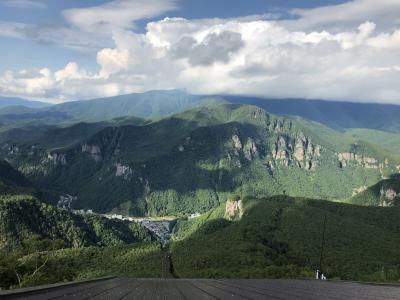 ツアーで訪問しました。ロープウェーは20分おきに出ていて、5合目まで7分で着きます。時間の関係でその上のリフトには乗れませんでした。目の前には柱状節理の山がそびえたっています。今は緑の山ですが、秋には紅葉し美しいと思います。