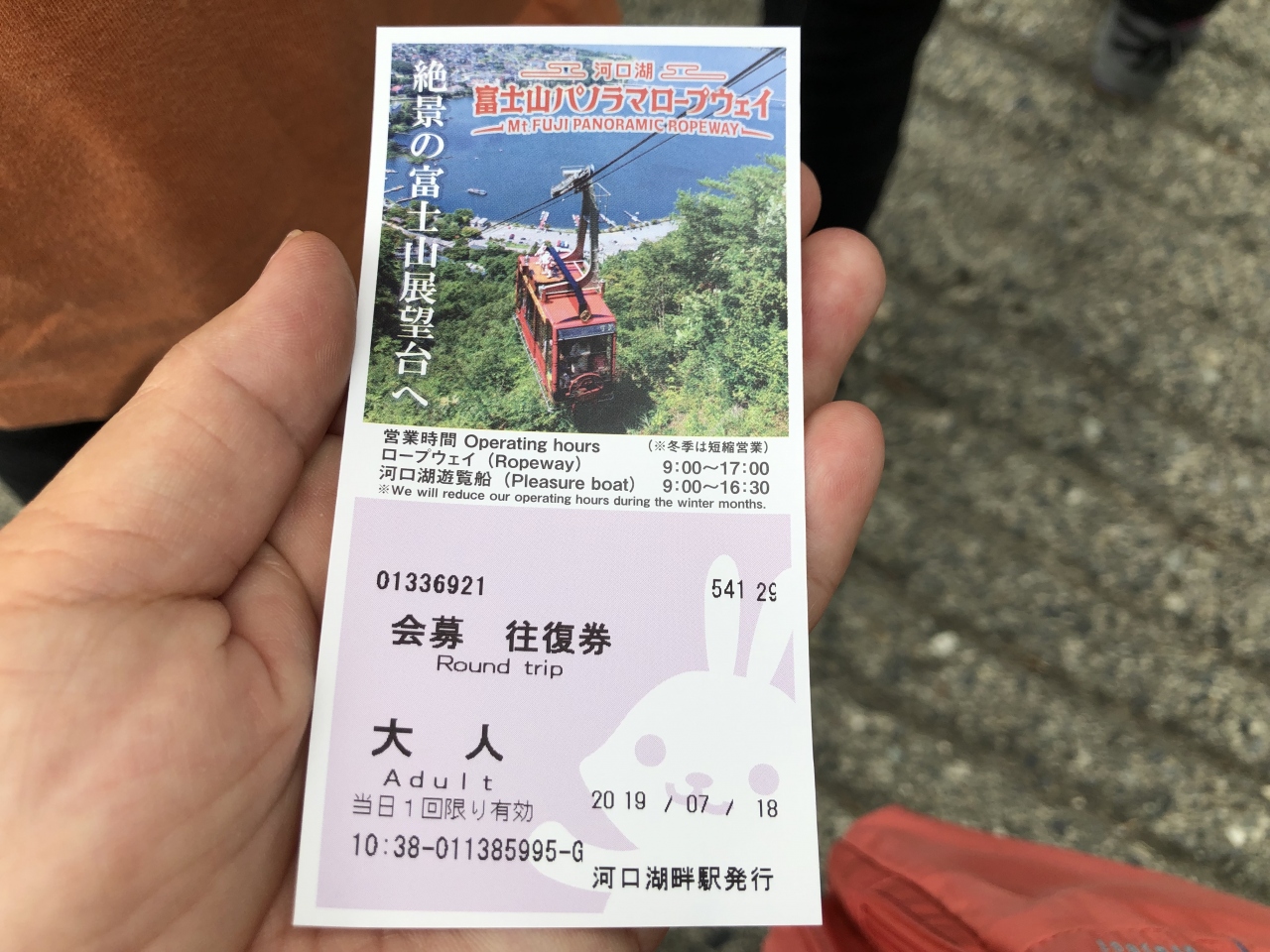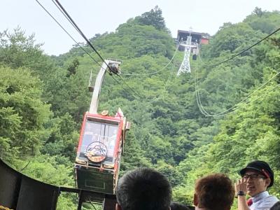 日帰りはとバスツアーで訪問しました。観光バス到着が重なったこともあり、ロープウェイ2台がピストン運行するものの、乗るまで1時間待ち。混雑で人に挟まれて車外は見えず。乗車時間は3分。上での滞在時間は10分。曇っていて富士山は見えず。行きも帰りもウサギの籠やのロープウェイでした。料金は900円。