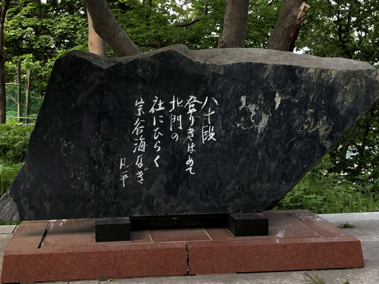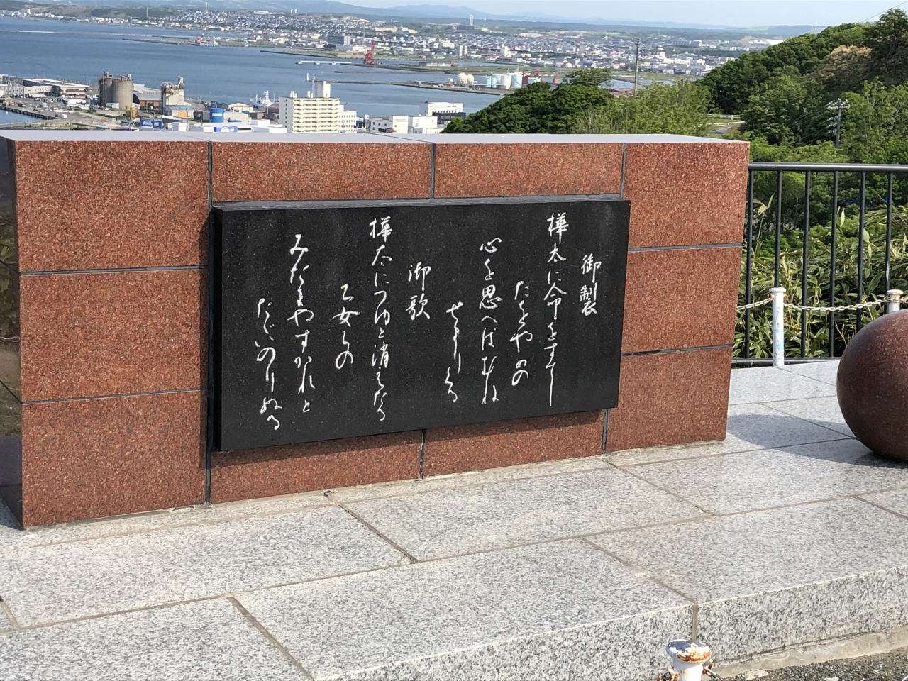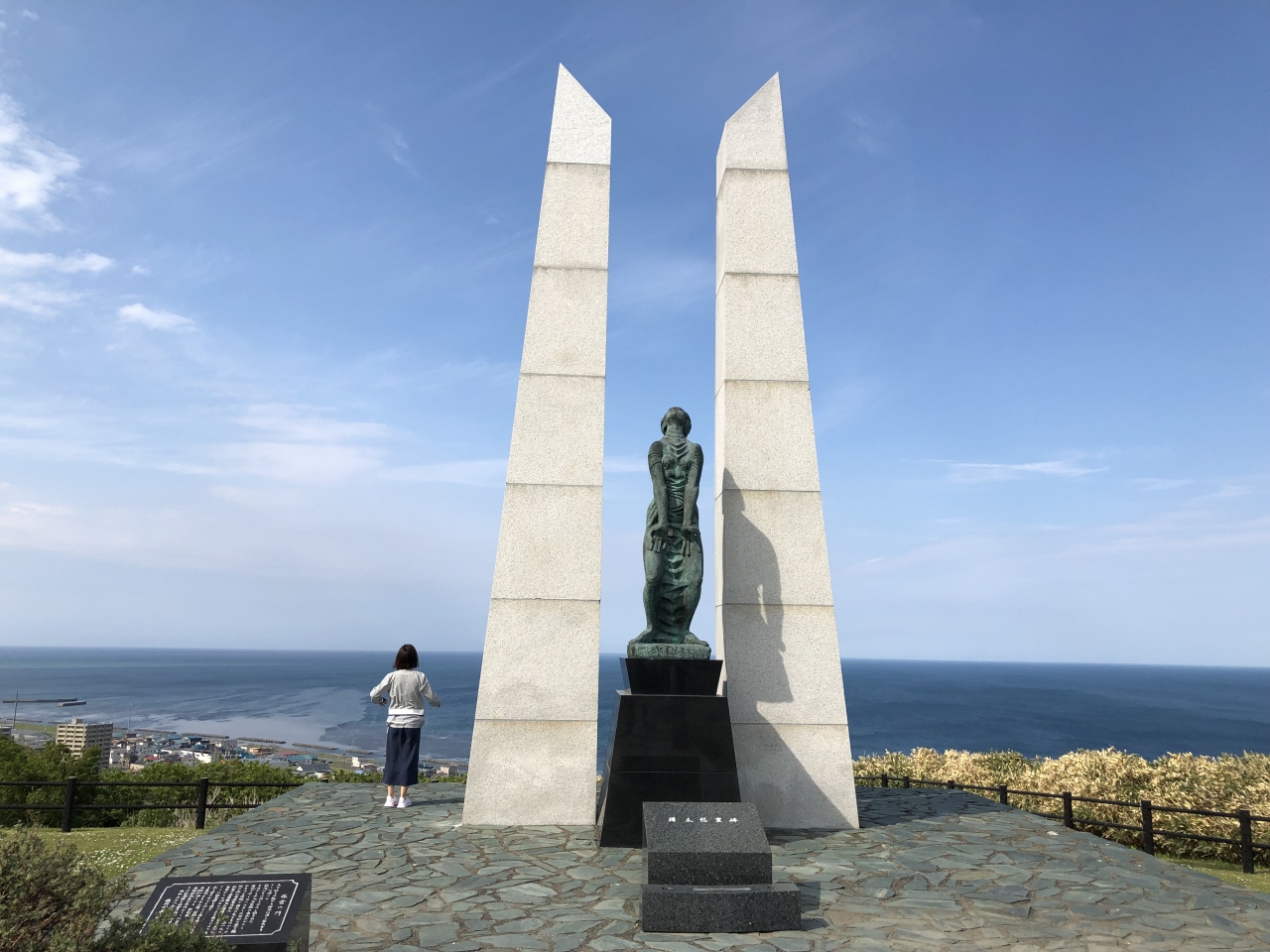 ツアーで稚内公園に行きました。「氷雪の門」「9人の乙女の碑」などと並んでこの碑があります。「9人の乙女の碑」の背景をバスガイドさんに聞き、感銘を受けました。昭和天皇も背景をお聞きになって、感銘を受け、謳われたようです。