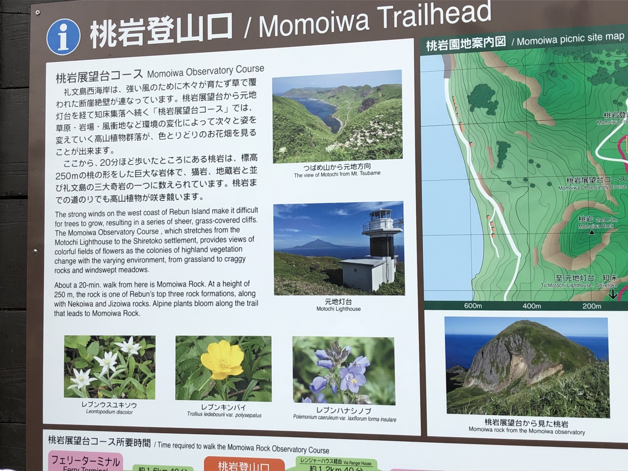 ツアーで、バス駐車場で降りて、ガスガイドを先頭に、歩いて登って行きました。ミニハイキングと言う名ですが、結構傾斜が急で、息が切れました。途中可憐な花々の名前を聞きながら登りました。生憎の曇り空、お花はよく見えましたが、桃岩は見えませんでした。