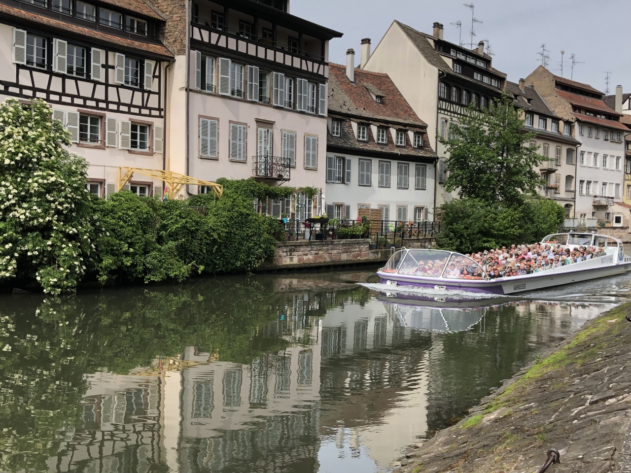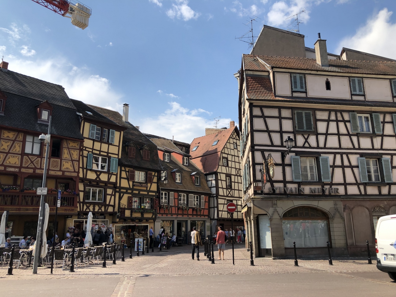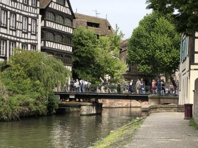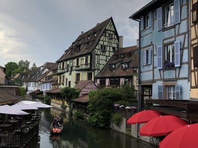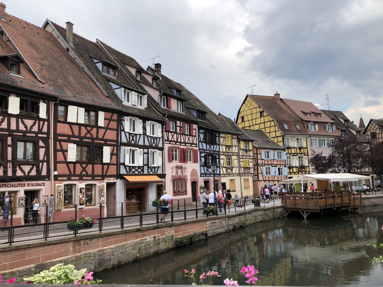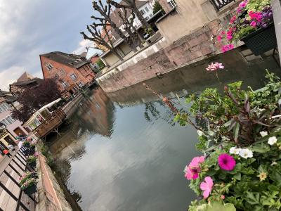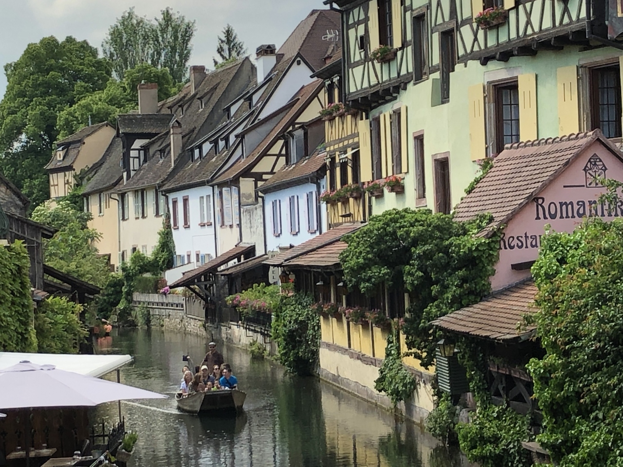 ツアーでコルマールの街歩きをしました。パステルカラーのカラフルな家々、橋に飾られたプランターの花々、川、川に浮かぶボートや船、木組みの家々など、どれをとっても可愛く、美しく、絵になります。観光客が多いのもうなづけます。