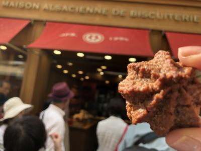 ツアーでストラスブールの街歩きをしました。クッキーを試食をさせてくれたので、遠慮なく一粒。シナモンが効いていて美味しいです。自由時間に行って買いました。グラム単位で秤売りをしていて、それほど高くありません。