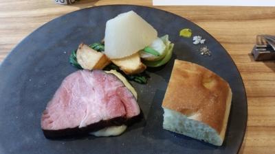 日帰りバスツアーのランチで訪問しました。御船山楽園の入り口にあるレストランです。この時期、庭はつつじが美しいです。メニューはマグロとむかごと野菜のニラソースかけ、パン、薪焼き若楠ポーク、パンナコッタ、コーヒー。お肉はいぶした味で美味しかったです。