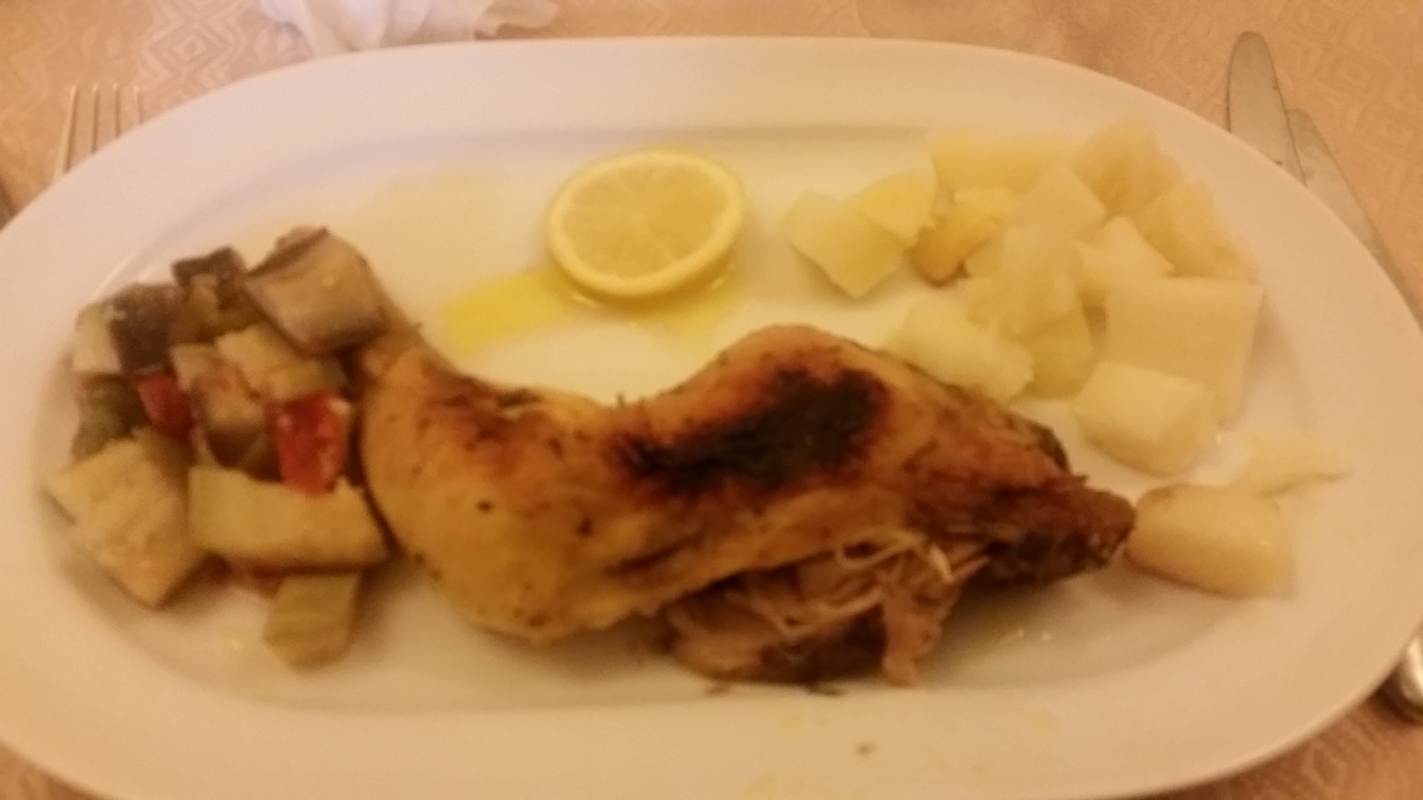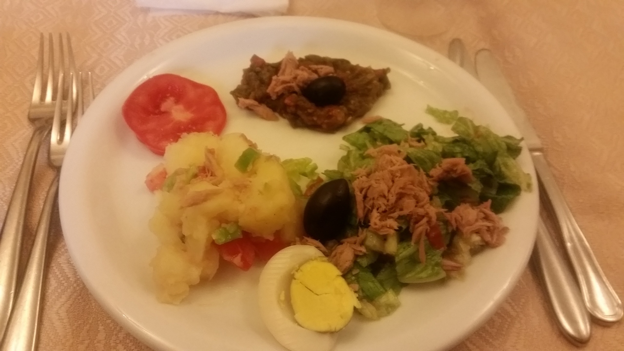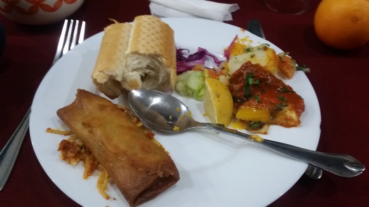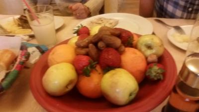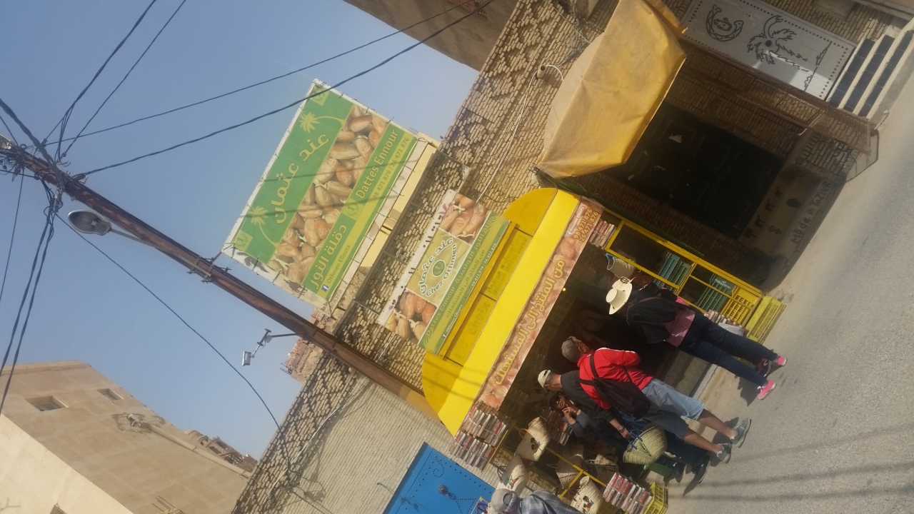 ツアーで訪問し、ランチを頂きました。入り口には恐竜の模型がお出迎え。店の前にもナツメヤシの木が茂っていました。メニューはサラダ、ベルベル風ピザ、チキンのトマト煮こみ、フルーツの盛り合わせ。普通においしかったです。