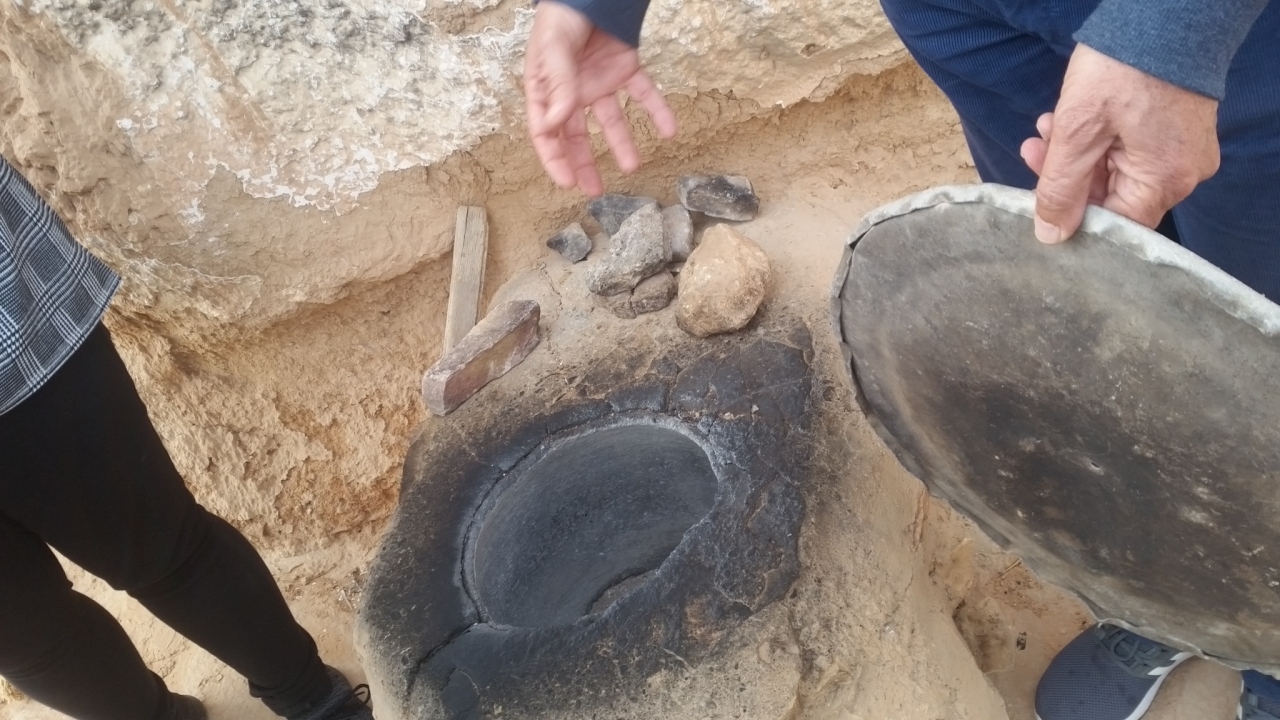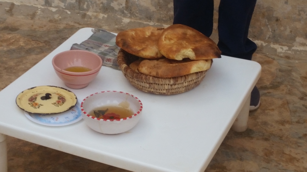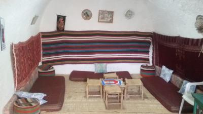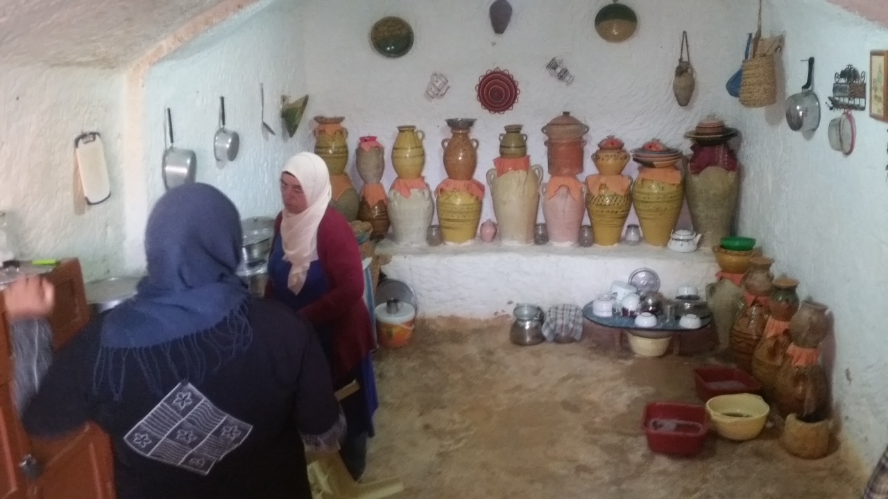 ツアーで訪問しました。実際に住んでいる方のお宅に訪問した形になります。台所、寝室、リビングルームなど、穴を掘って造られています。大麦をひき、それを焼いてパンにし、ミントティーを添えてごちそうして頂きました。