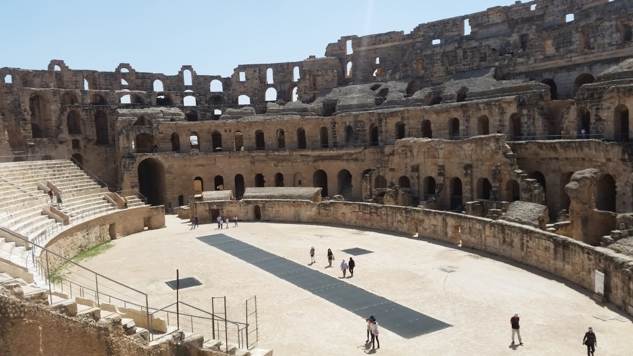 ツアーで訪問しました。世界で3番目に大きな規模の闘技場で、35000人収容可能だそうです。広くて保存状態がよく、他の闘技場より空いているので、おすすめです。観客席の下のほうは富裕層、上のほうは貧しい人が座るそうです。地下には猛獣を上げるリフト跡、剣闘士の控室などがあります。