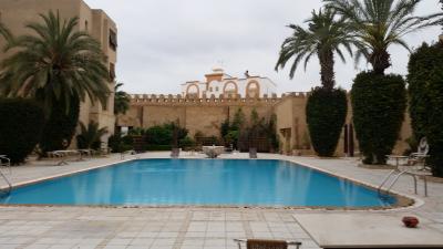ツアーで宿泊しました。カスバを改修してホテルにした、チュニジア唯一のホテルです。5つ星で、風情があります。夜も朝もお湯が出ます。ハマㇺは30ディナールからだそうです。プールもあります。ウェルカムドリンクは生レモンジュース、マクルード付き。電気ポットはありません。クロワッサンが温かく美味しかったです。