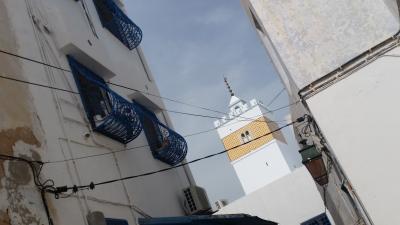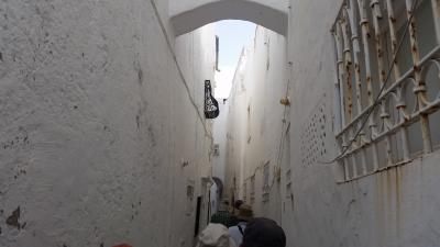 ツアーで訪問しました。カスバの横を通り、旧市街に入りました。土産物屋が並ぶ通りを過ぎると、白い壁、青い窓やドアの家々が並んでいました。かわいい感じの町でした。その後の自由時間では、お土産物屋を覗きました。値段についてのやり取りが楽しかったです。