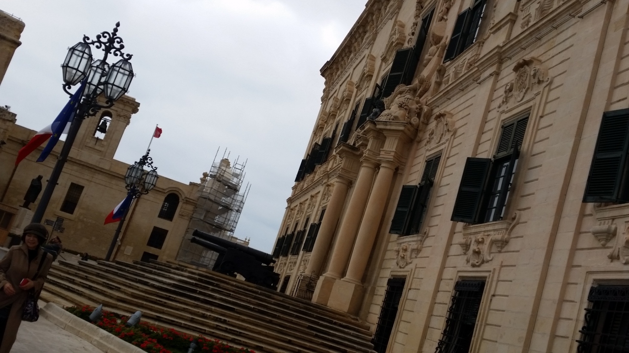 ツアーで前を通りました、首相官邸なので、入場はできません。塀も、警備兵の姿もなく、観光客が前を多く通り、大丈夫なのだろうかと、却って心配になりました。1574年にスペイン・ポルトガル出身の騎士団の宿泊所として建設され、後にバロック様式に改装されました。